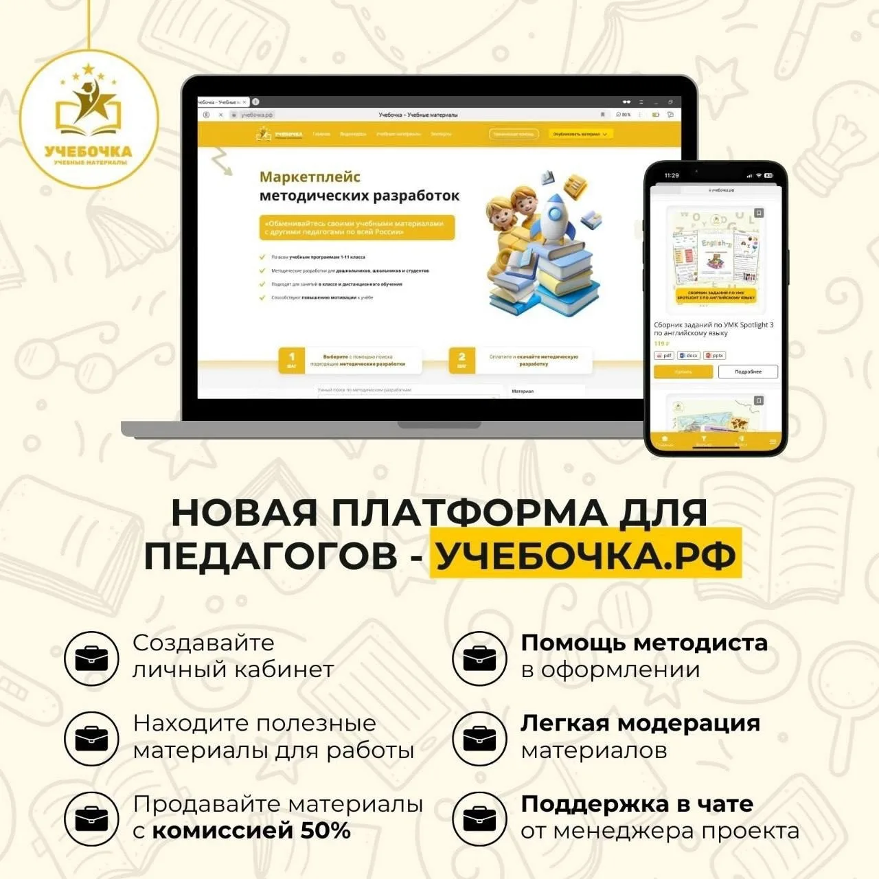 Учебочка.рф - платформа для преподавателей и методистов, где можно не только приобрести полезные разработки, но и разместить свои материалы на продажу 🎓
