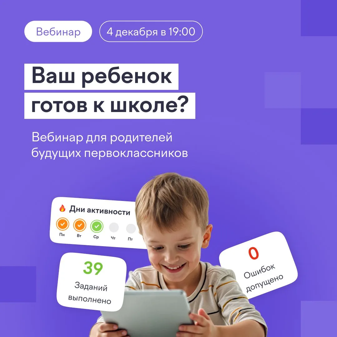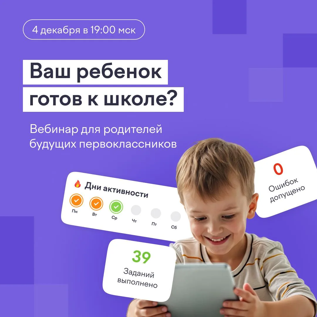 Тут-тук, последнее напоминание: 4 декабря говорим про подготовку к школе. Прямая трансляция пройдет в 19:00 мск.