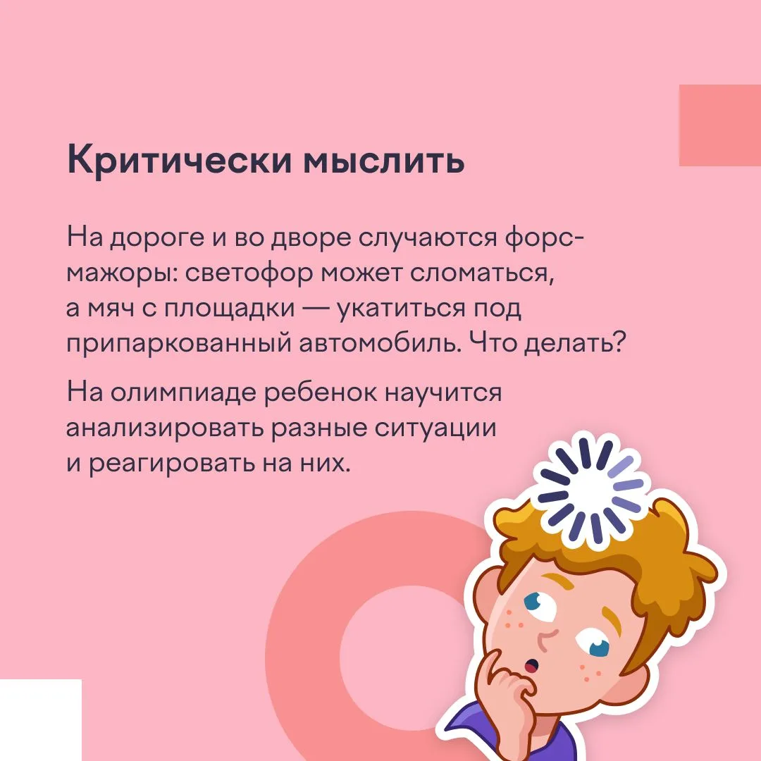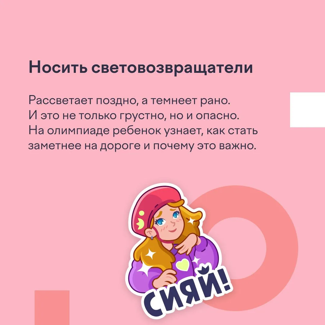 Но одних правил мало. Важно уметь действовать в нестандартной ситуации. Сломался светофор? Нет велодорожки? Надо обойти автобус и попасть на остановку? На олимпиаде «Безопасные дороги» дети не просто запоминают алгоритмы, но и учатся оценивать ситуацию. Как? Рассказываем в карточках. Читайте и присоединяйтесь