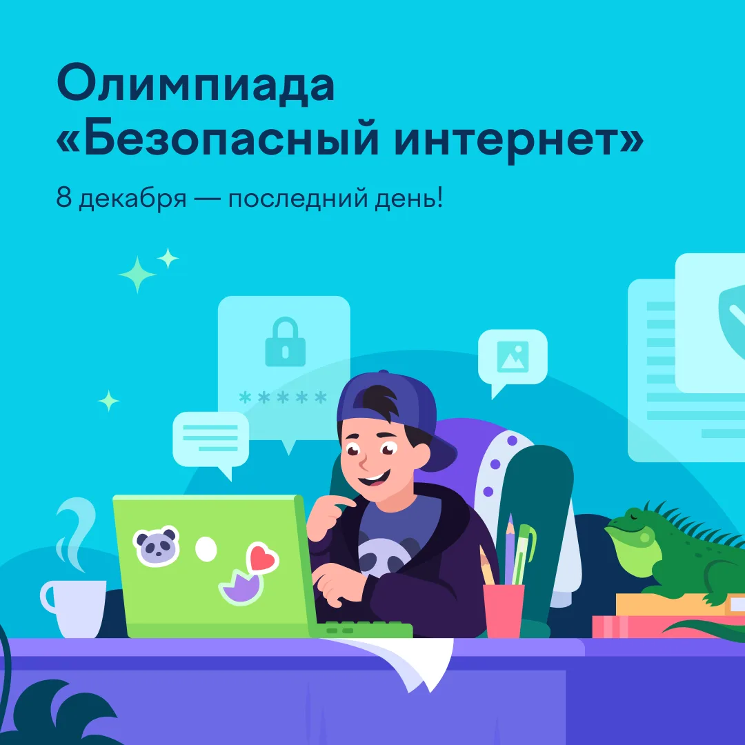 Олимпиаду «Безопасный интернет» можно пройти до 8 декабря включительно. Поторопитесь: https://vk.cc/cS1zTq