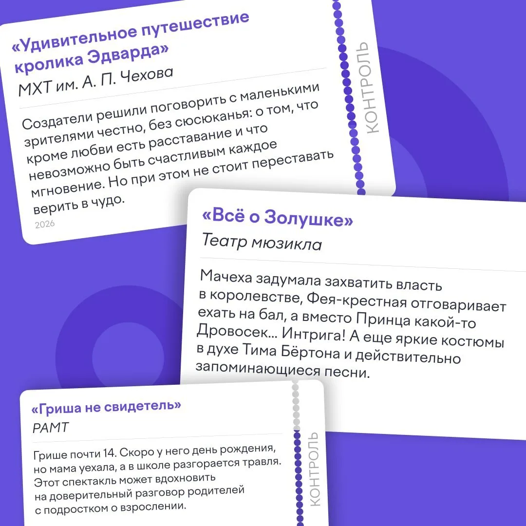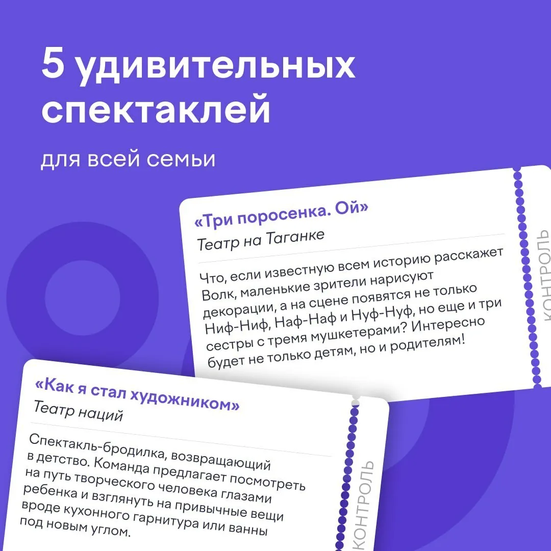 В карточках несколько вариантов, где ваши дети точно не заскучают. Разбирайте билеты!