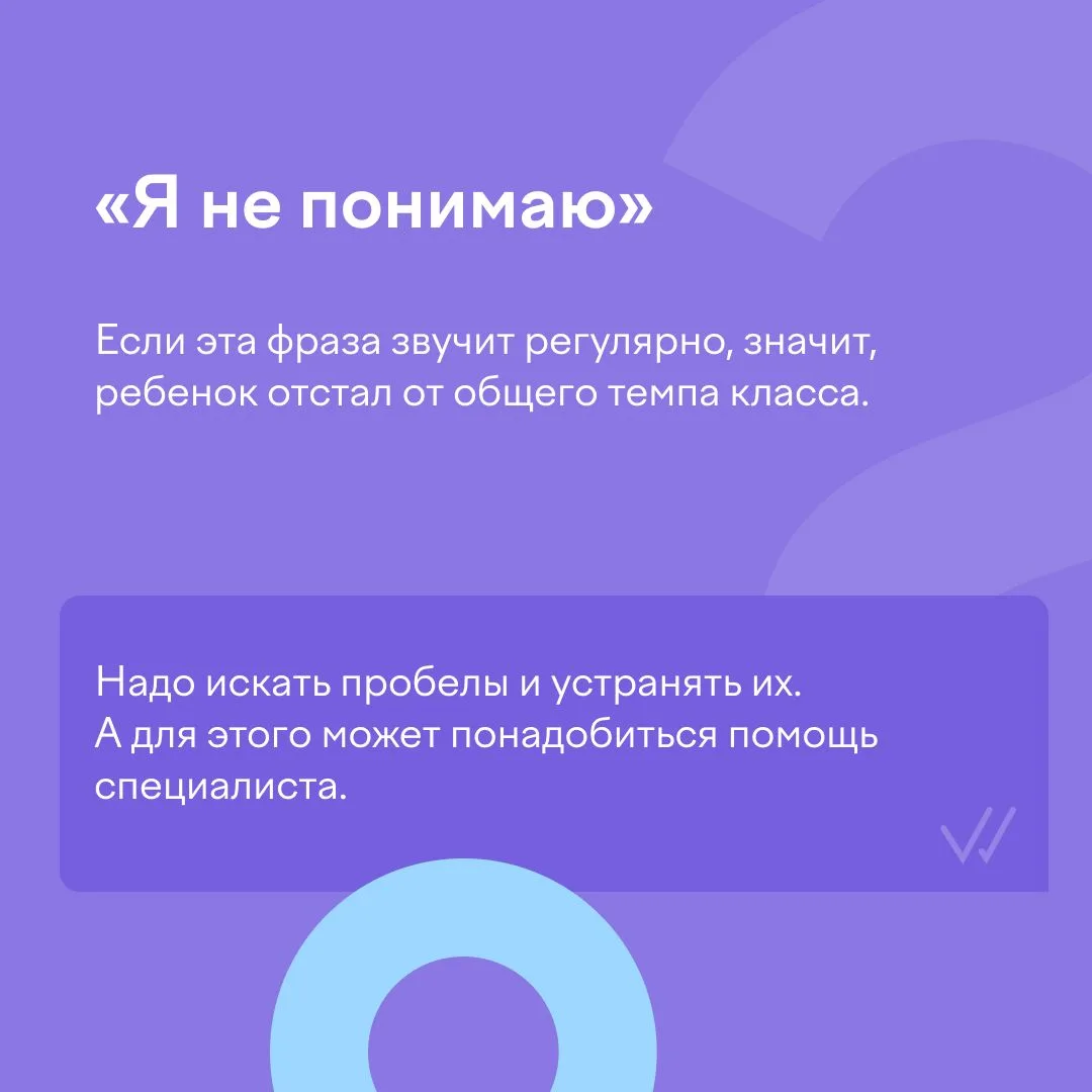 Ребенок часто говорит, что ему неинтересно или сложно в школе? Возможно, это не просто капризы, а сигнал: пора подключать эксперта. В карточках рассказали, после каких фраз детей стоит задуматься о дополнительной поддержке.