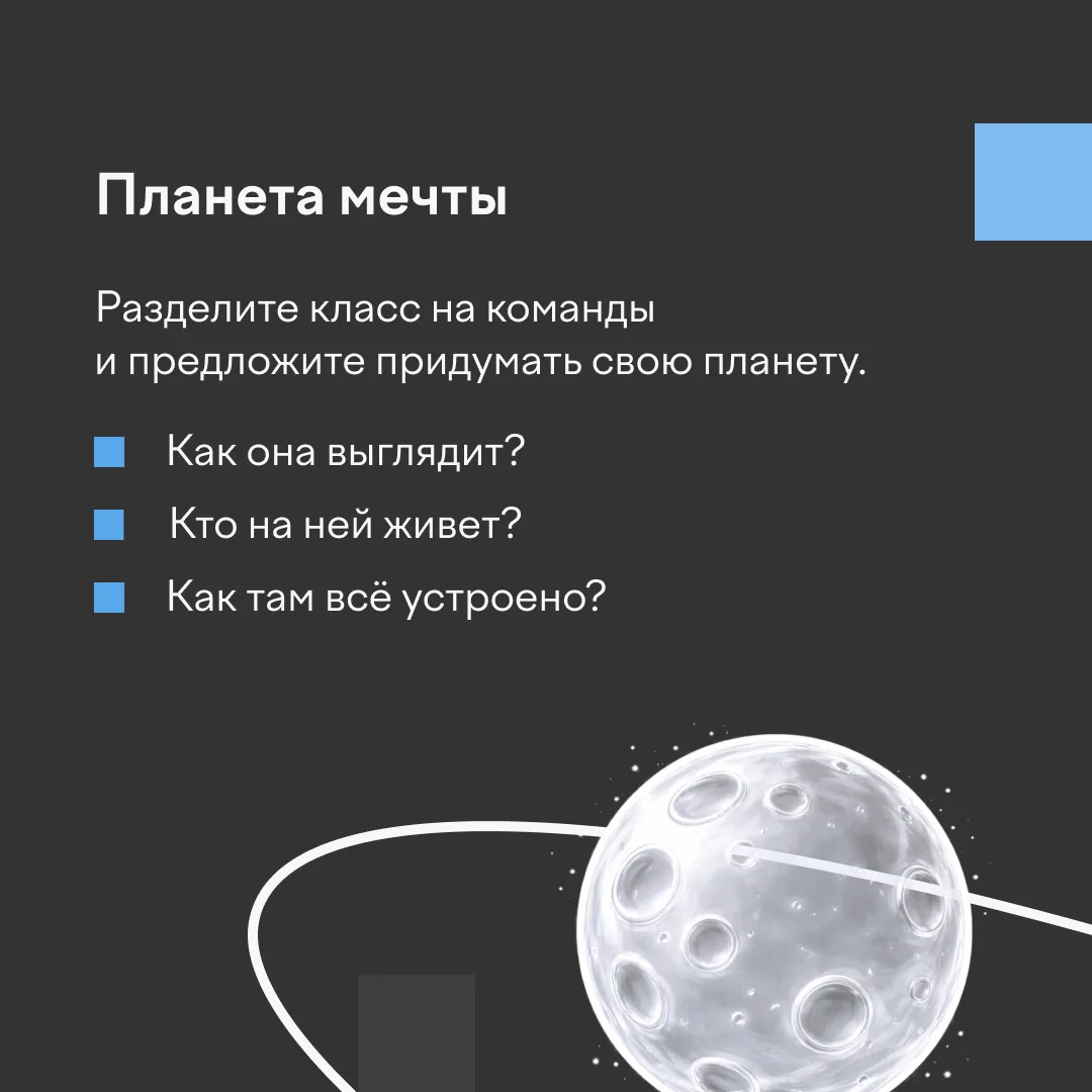 Как сделать это без сложных сценариев и долгих подготовок? Собрали подборку простых идей, которые помогут превратить класс в космический шаттл! Листайте карточки, чтобы выбрать подходящий формат.