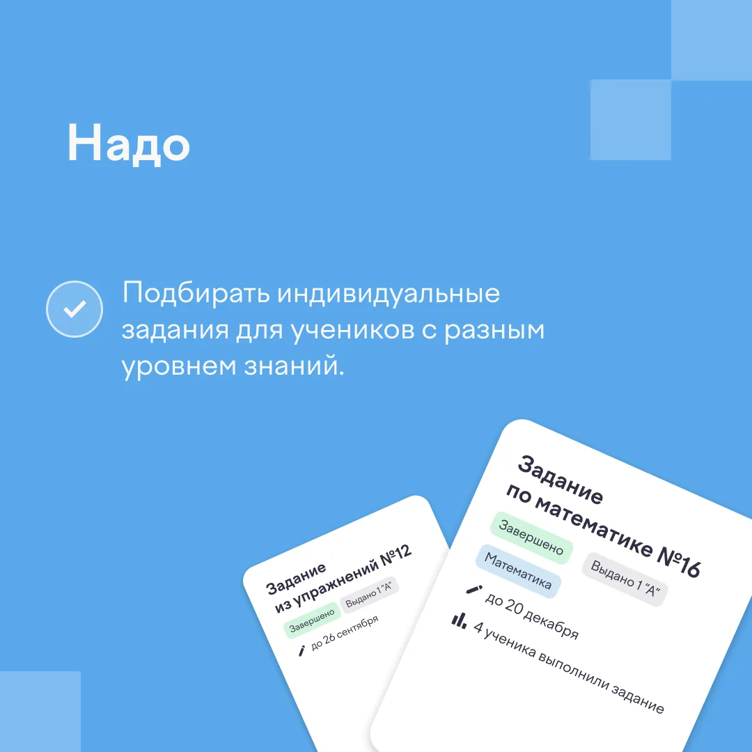 В классе 30 человек, и у каждого свои обстоятельства: кто-то много пропустил из-за болезни, кто-то не понимает тему с первого раза, а кто-то уже прошел пол-учебника с бабушкой на каникулах и скучает. Знакомо?