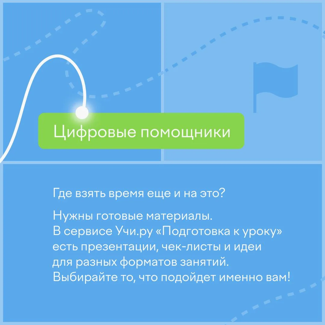 В этом году предлагаем избежать негативного сценария и воспользоваться сервисом Учи.ру «Подготовка к уроку». В нем собраны карточки, презентации, планы занятий, проверочные и домашние работы практически по каждой теме. Всё соответствует ФГОС, удобно структурировано по классам, направлениям и оформлено так, чтобы ребятам было интересно. В карточках рассказали об остальных преимуществах.