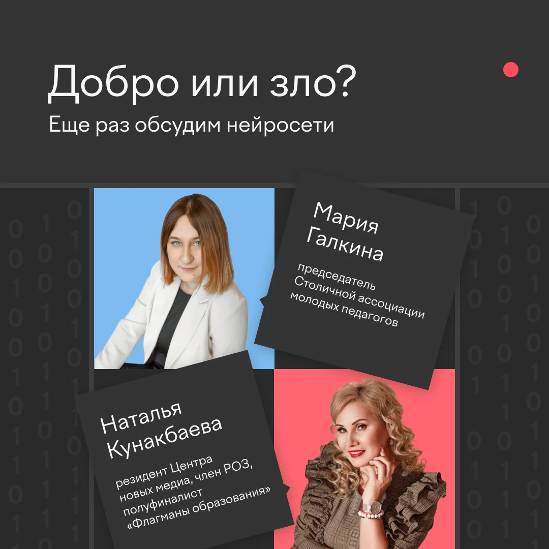 Мы попросили двух экспертов с противоположными взглядами в прямом эфире обсудить искусственный интеллект. Экономит он время или отнимает? А учителей заменит? Школьники с ним учатся хуже или лучше? Посмотреть «поединок» можно 30 октября в 17:30 мск. Подключайтесь: https://vk.cc/cQMuCZ