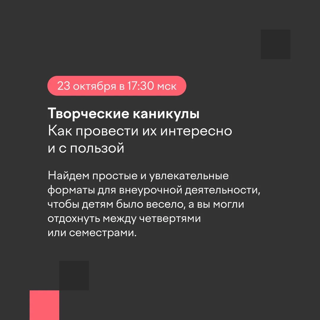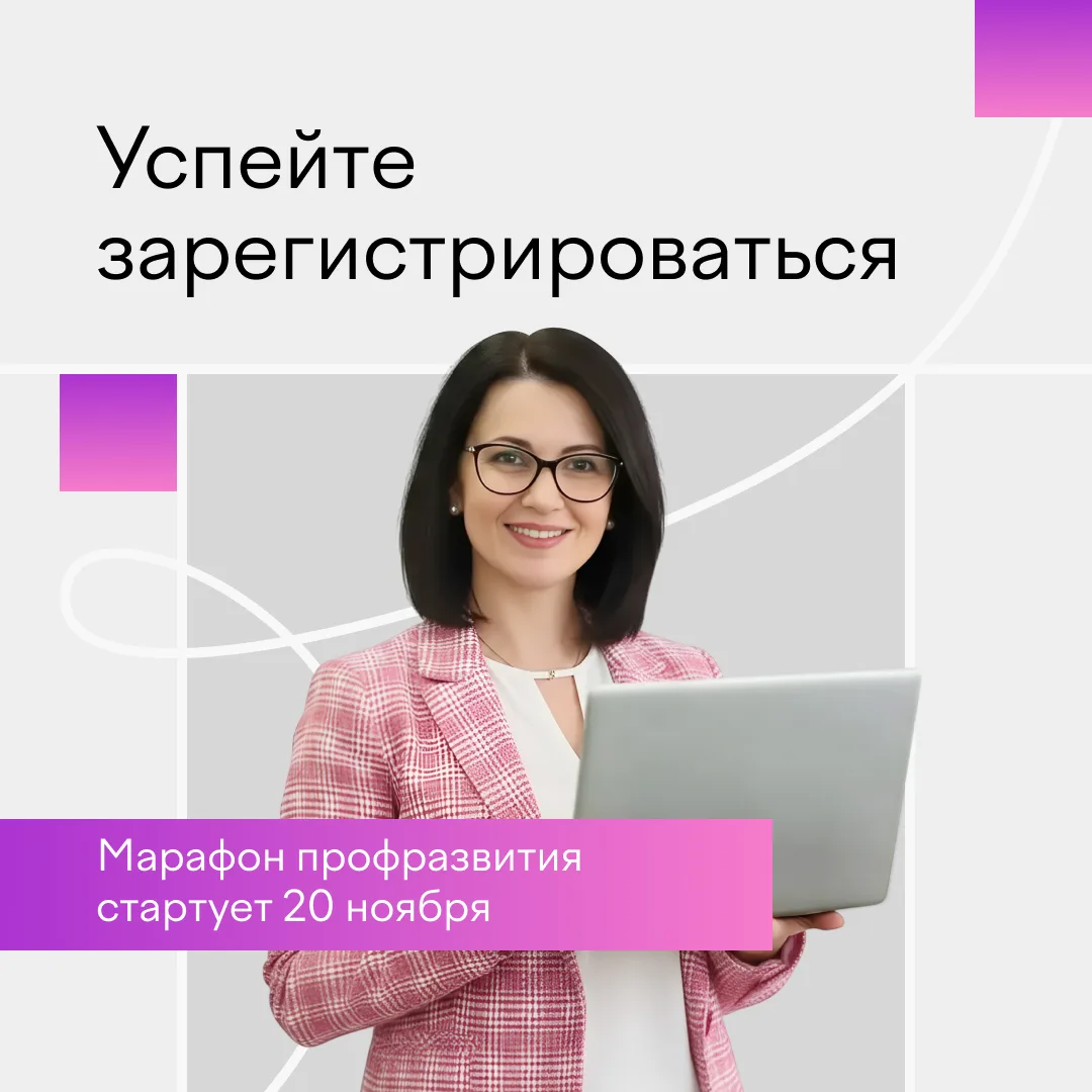 Напоминаем, что до 5 декабря каждый будний день мы проводим вебинары, встречи с экспертами и мастер-классы. Знания, полученные на марафоне профразвития, помогут найти новые подходы в работе, разобраться с ИИ и лучше понять учеников. А еще эти встречи позволят взглянуть на свои задачи под новым углом и справиться с усталостью, которая накопилась к концу года.