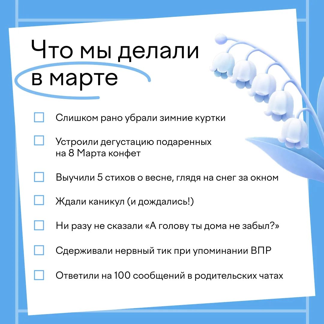 📎 А пока давайте подведем итоги месяца. Отмечайте пункты в нашем списке и рассказывайте в комментариях, чем вам запомнился март.