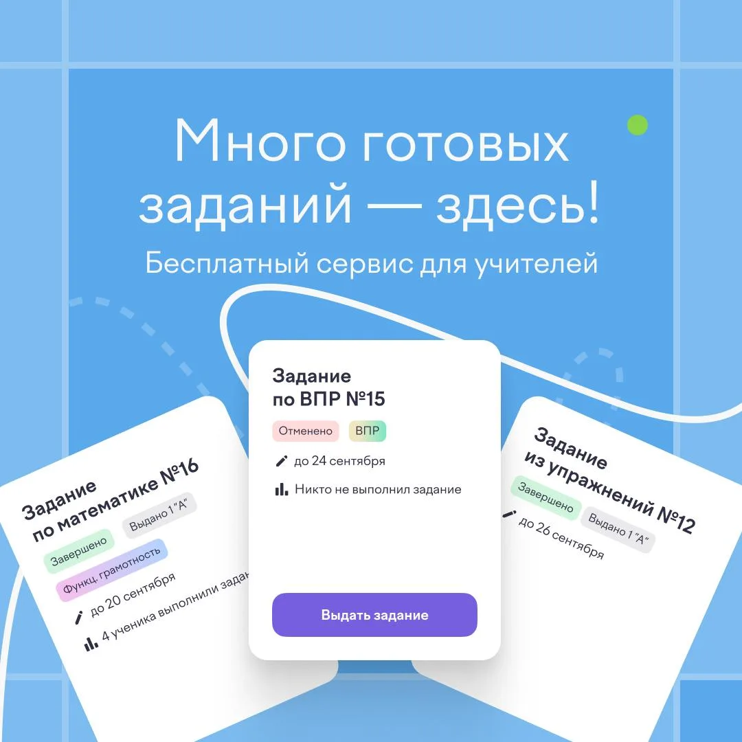 Как уделить внимание всем, когда вы один(-на)? У нас нет маховика времени, но есть сервис «Мои задания». В нем мы собрали готовые материалы, чтобы вы не тратили силы на поиск, создание и адаптацию.