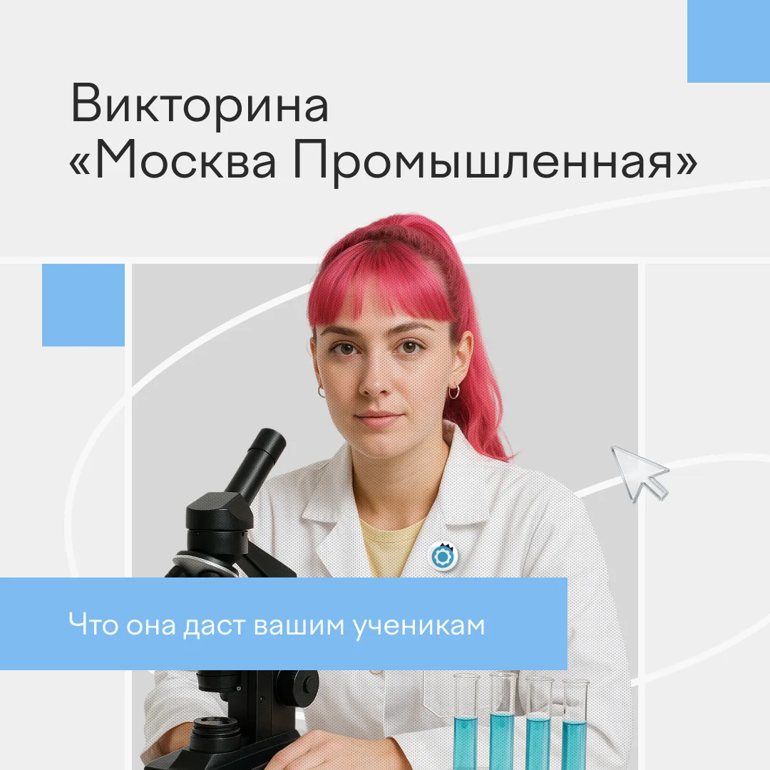 Позовите ребят на викторину «Москва Промышленная». В заданиях мы говорим о профессиях, которые нечасто обсуждаются на уроках и в семьях. Но они точно заинтересуют подростков, которые увлекаются космосом, информатикой, физикой, химией и даже гуманитарными науками.