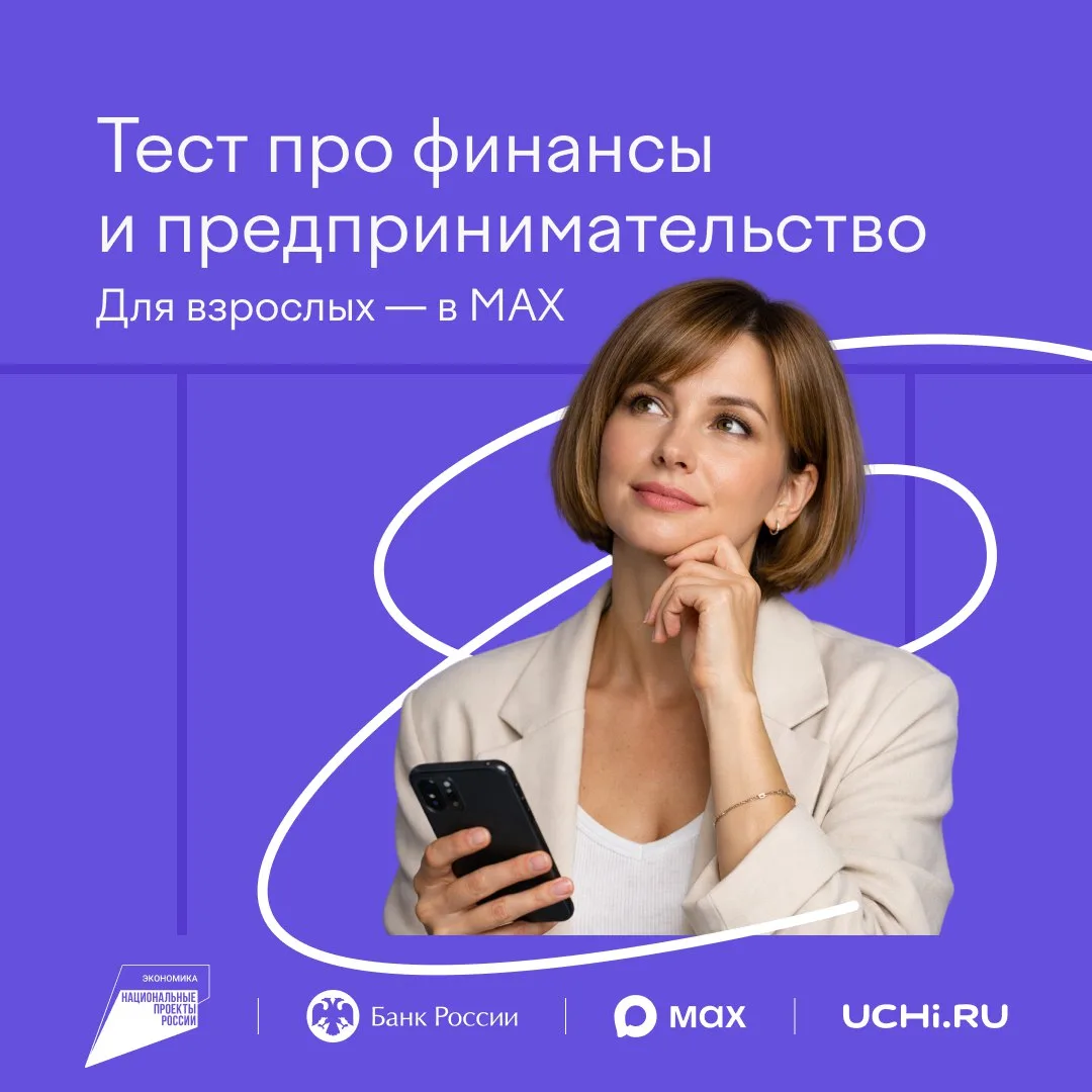 Сделали тест в MAX вместе с Банком России и нацпроектом «Эффективная и конкурентная экономика» на актуальные темы: от ипотеки до господдержки бизнеса. Ответьте на вопросы и получите полезные материалы от партнеров, которые помогут обсудить тему денег с классами.