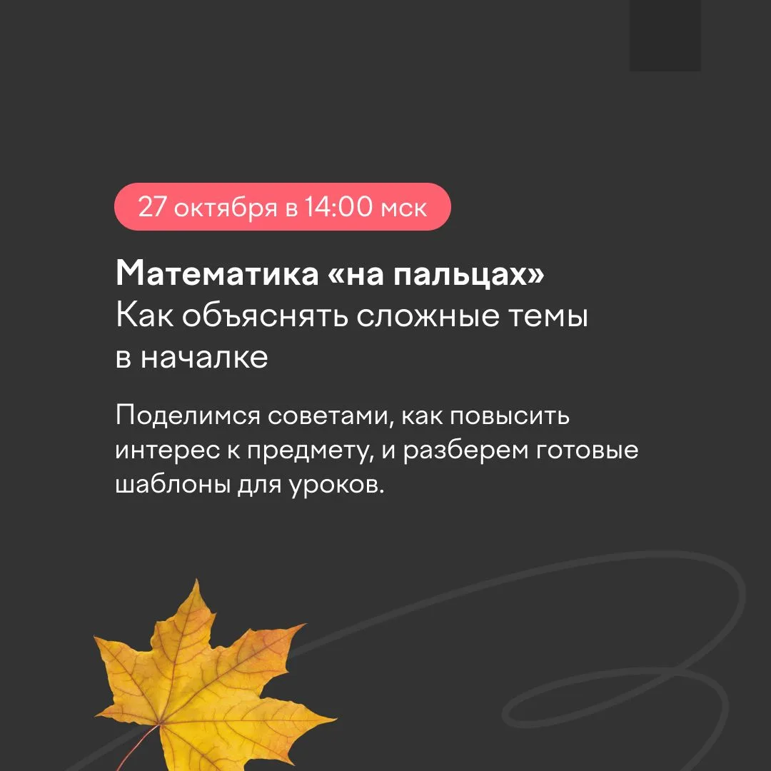 Как осенью справляться с чередой рабочих вызовов, успевать всё запланированное и находить время на отдых? Наши вебинары помогут подготовить методические материалы, обсудить сложные темы с коллегами и даже спокойно провести каникулы.