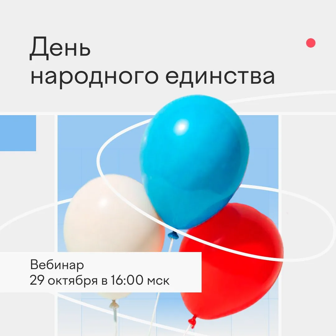 День народного единства — отличный повод для разговора с ученикам о разных культурах, традициях, сплоченности. Мы подготовили вебинар, который поможет вам провести интересный и полезный урок для школьников. Подробнее о программе встречи читайте в карточках.