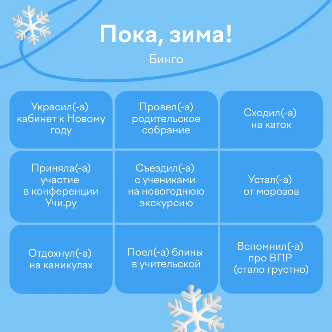 Отмечайте в бинго, что успели сделать за три темных и морозных месяца!