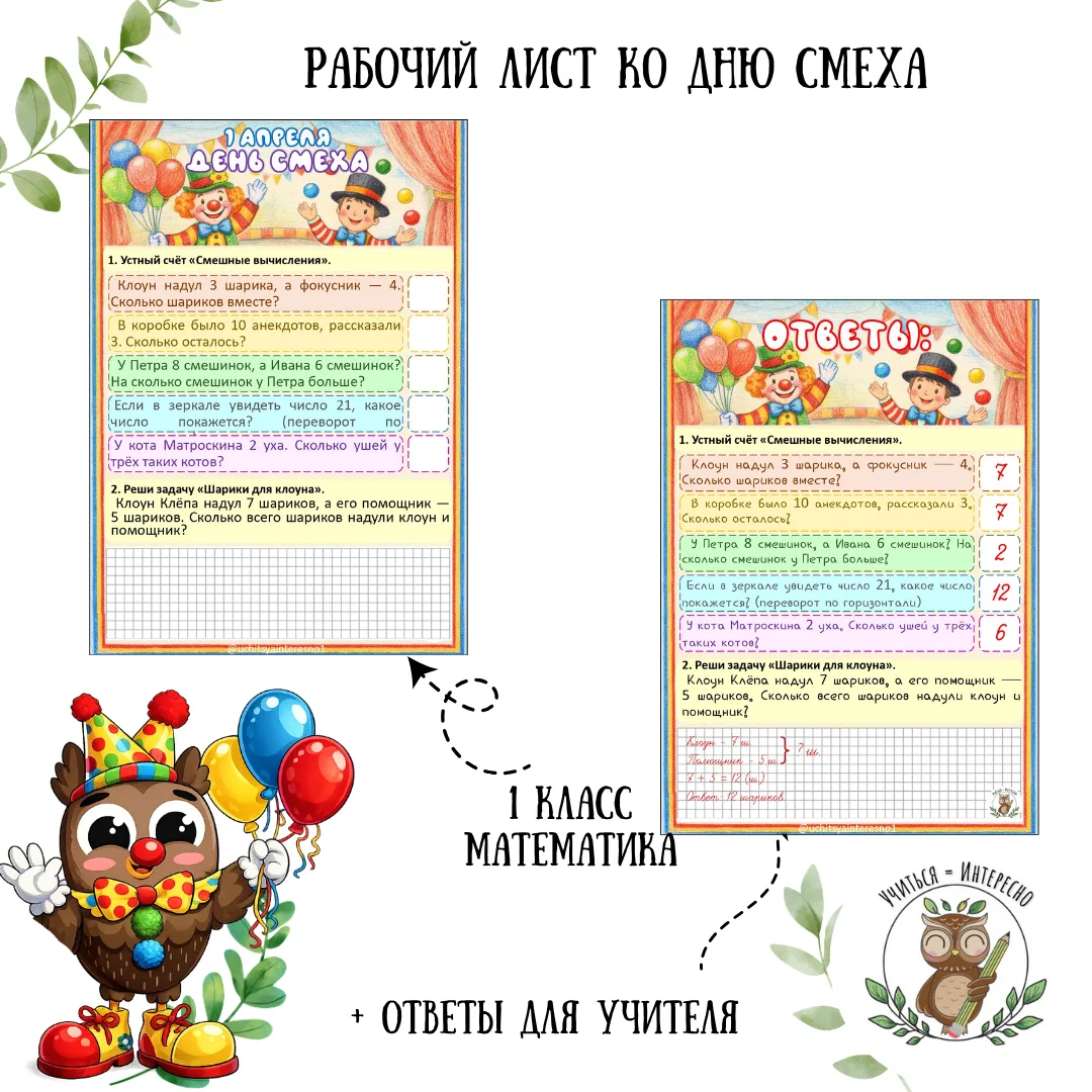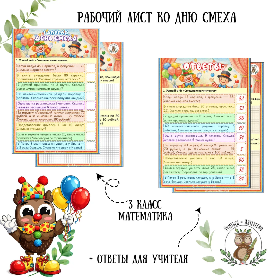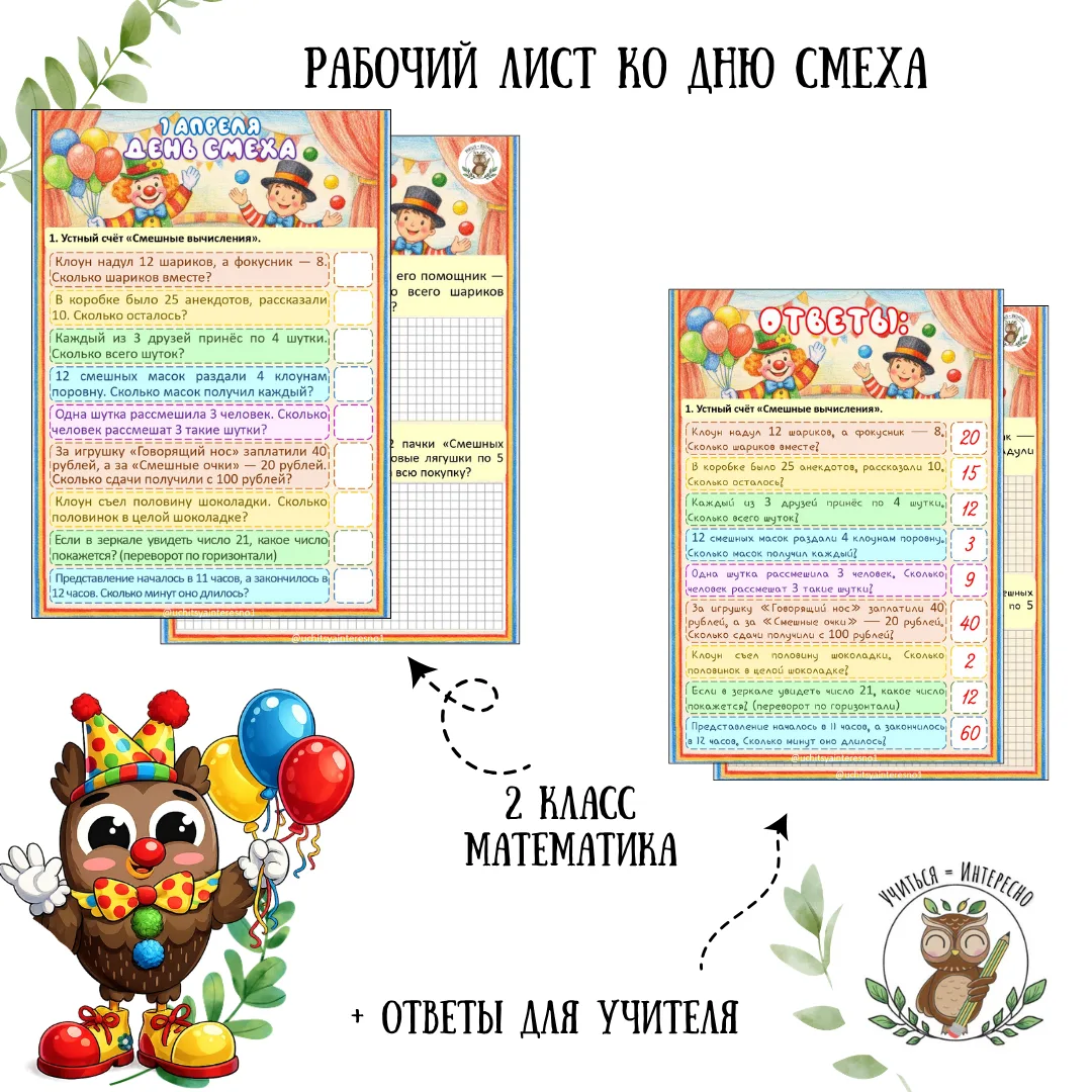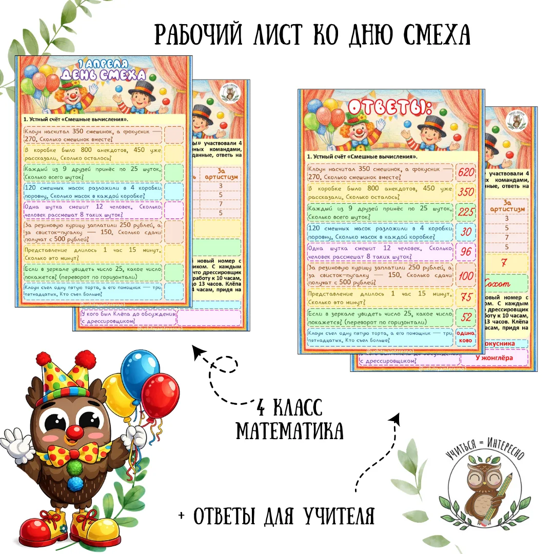 Подготовили рабочие листы и для уроков математики