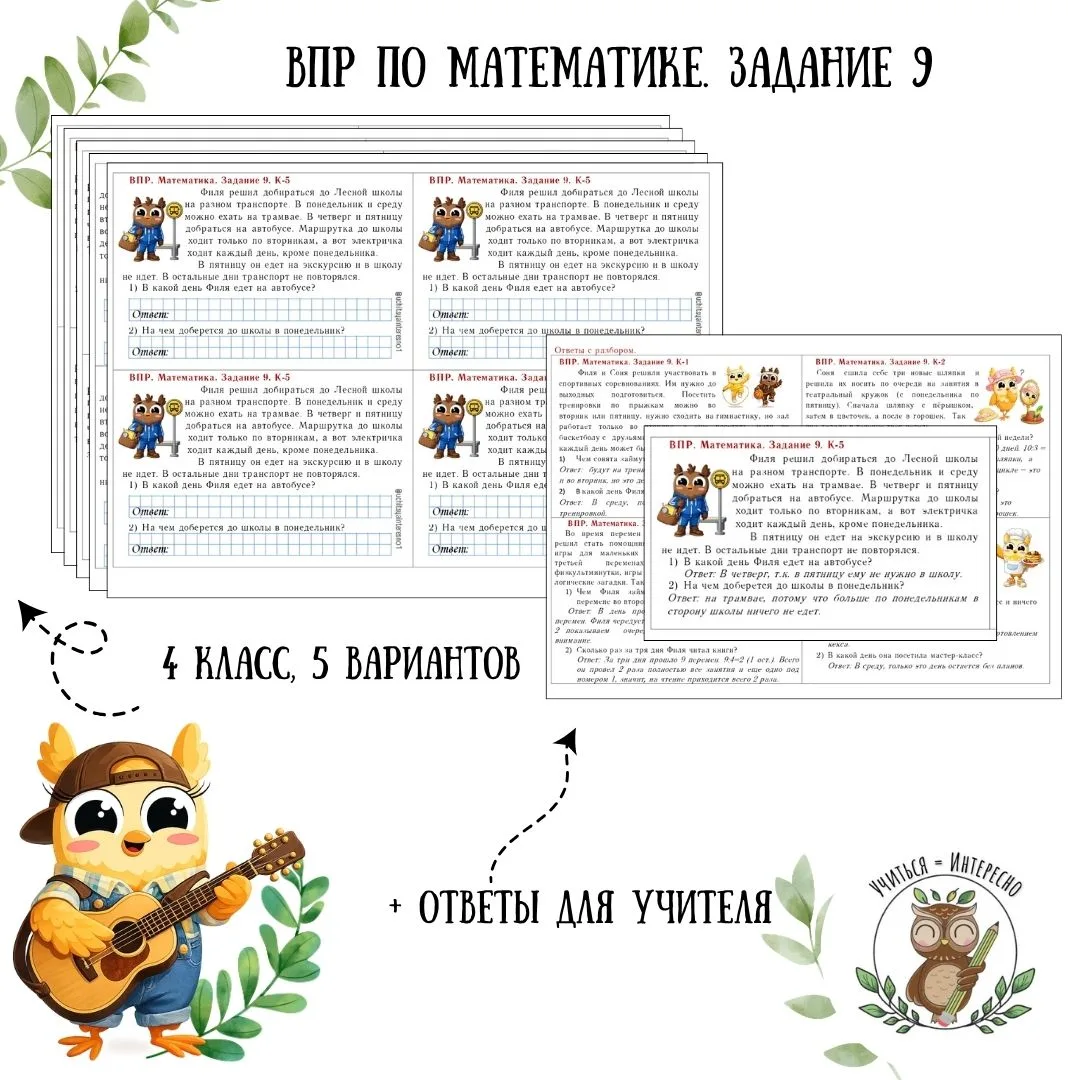 Делюсь с Вами карточками для отработки 9 задания по ВПР (математика 4 класс)