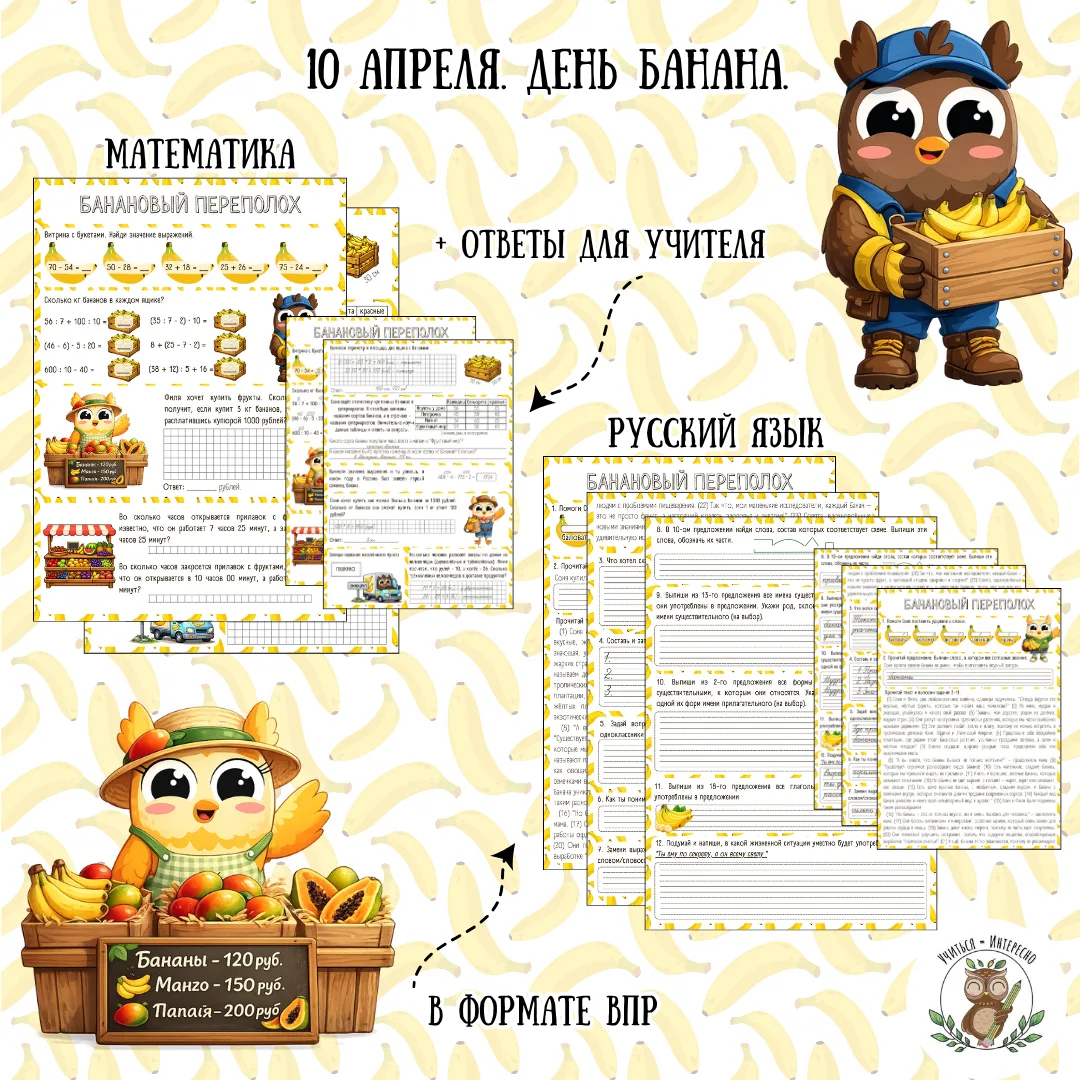 Теперь я совершенно свободна, муж сидит с ребенком, а я приступаю к разработке рабочих листов ко Дню Банана для 1-3 классов🥰