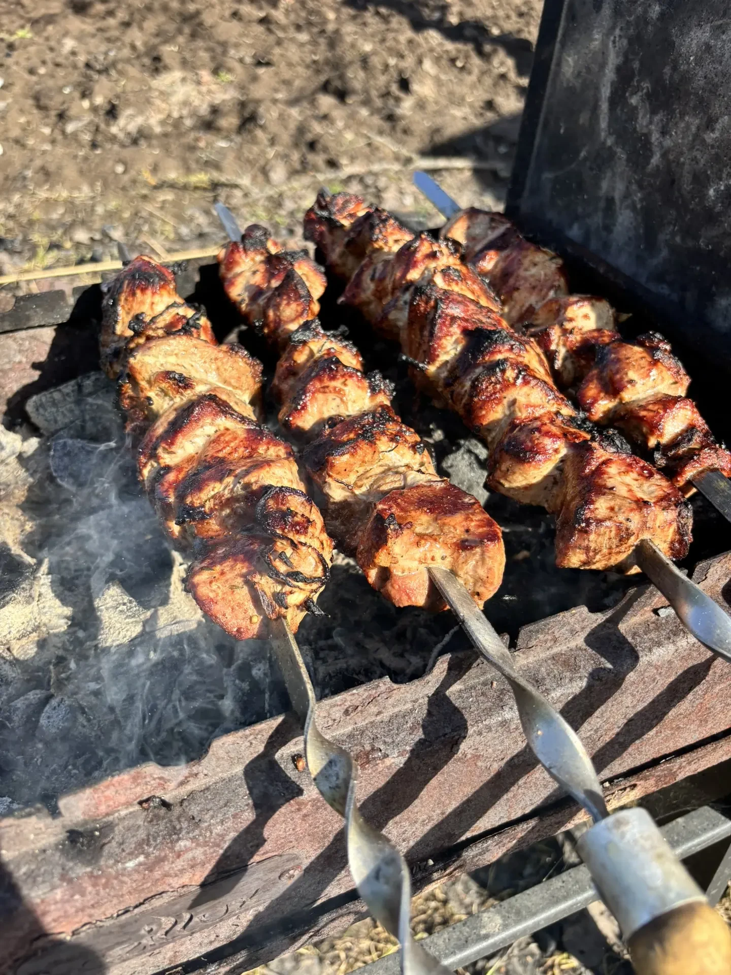 Погода замечательная, поэтому пока малыш спит, мы жарим шашлык 🍖