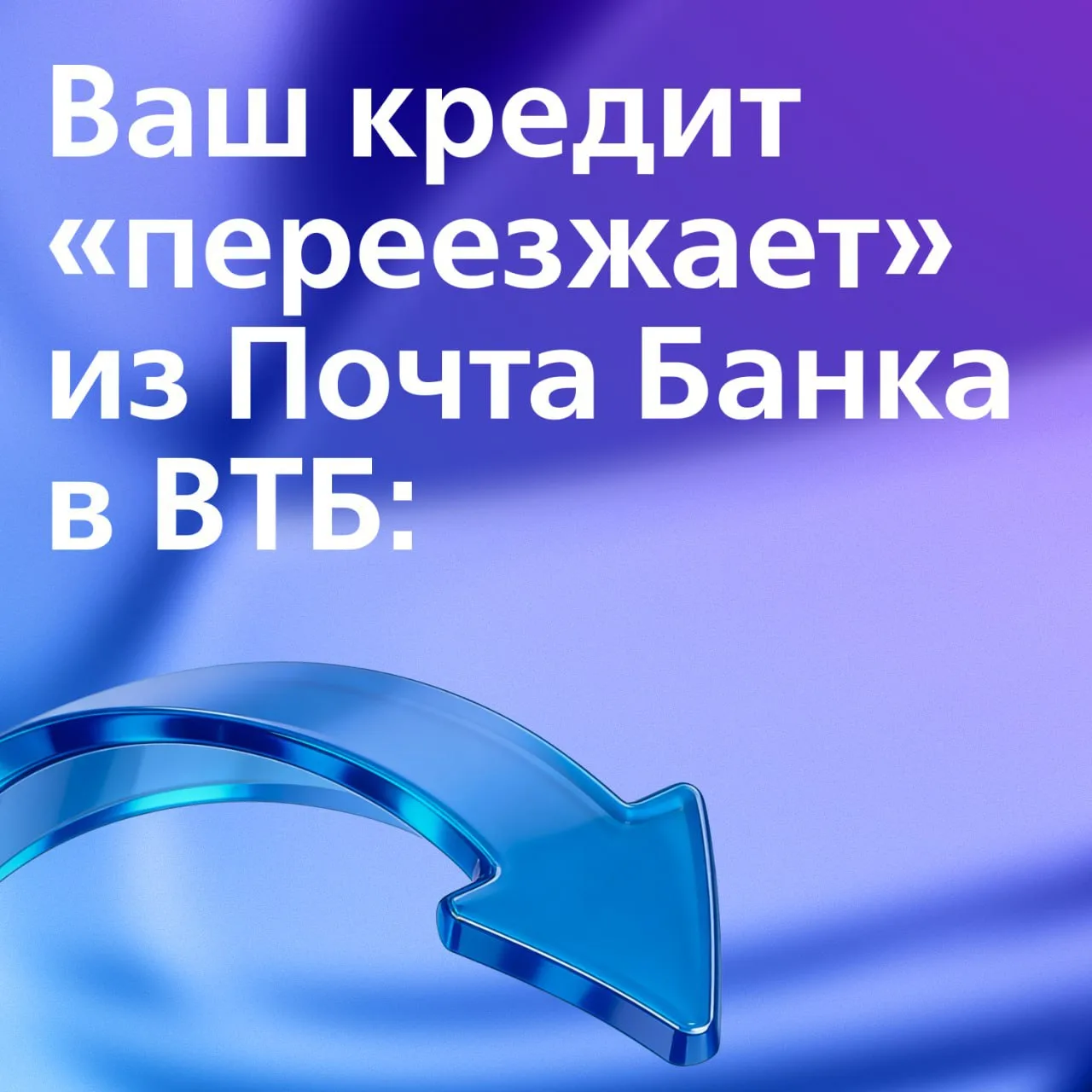 ВТБ начал перевод кредитов клиентов Почта Банка. Чтобы и дальше вносить платежи по своему кредиту, нужно перейти на обслуживание в ВТБ и открыть счет. Сделать это можно онлайн или в ближайшем отделении. Важно: условия вашего кредитного договора сохраняются — ставка, срок и график не меняются. Как оформить переход, показано в прикрепленных карточках.