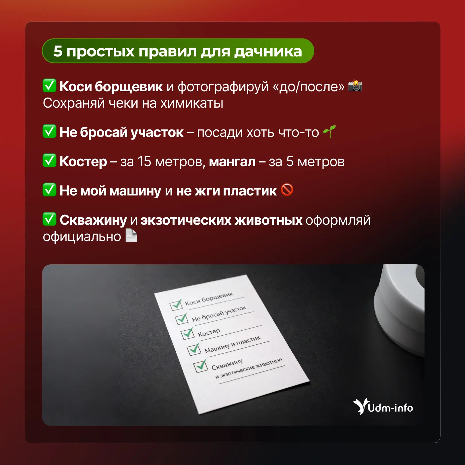 Как безопасно жарить шашлыки, где ставить уличный туалет и какие растения лучше не разводить на садовом участке — об этом в карточках 👆 и подробном материале на сайте Udm-info.