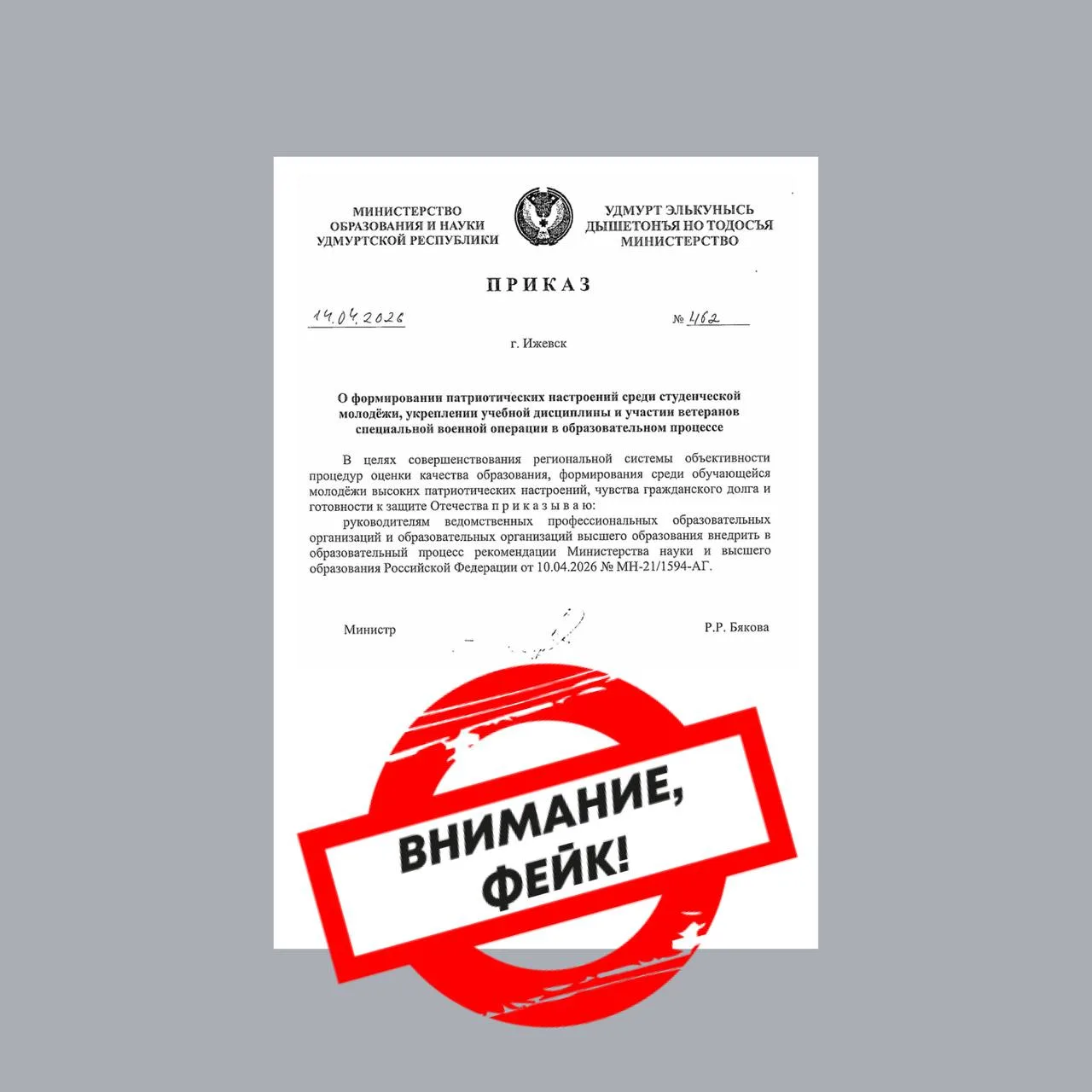 «В министерстве образования и науки УР информацию опровергли. Документ оказался фейком», — заявили в ЦУР и призвали получать достоверную информацию о деятельности минобрнауки в официальном канале ведомства в Мах.