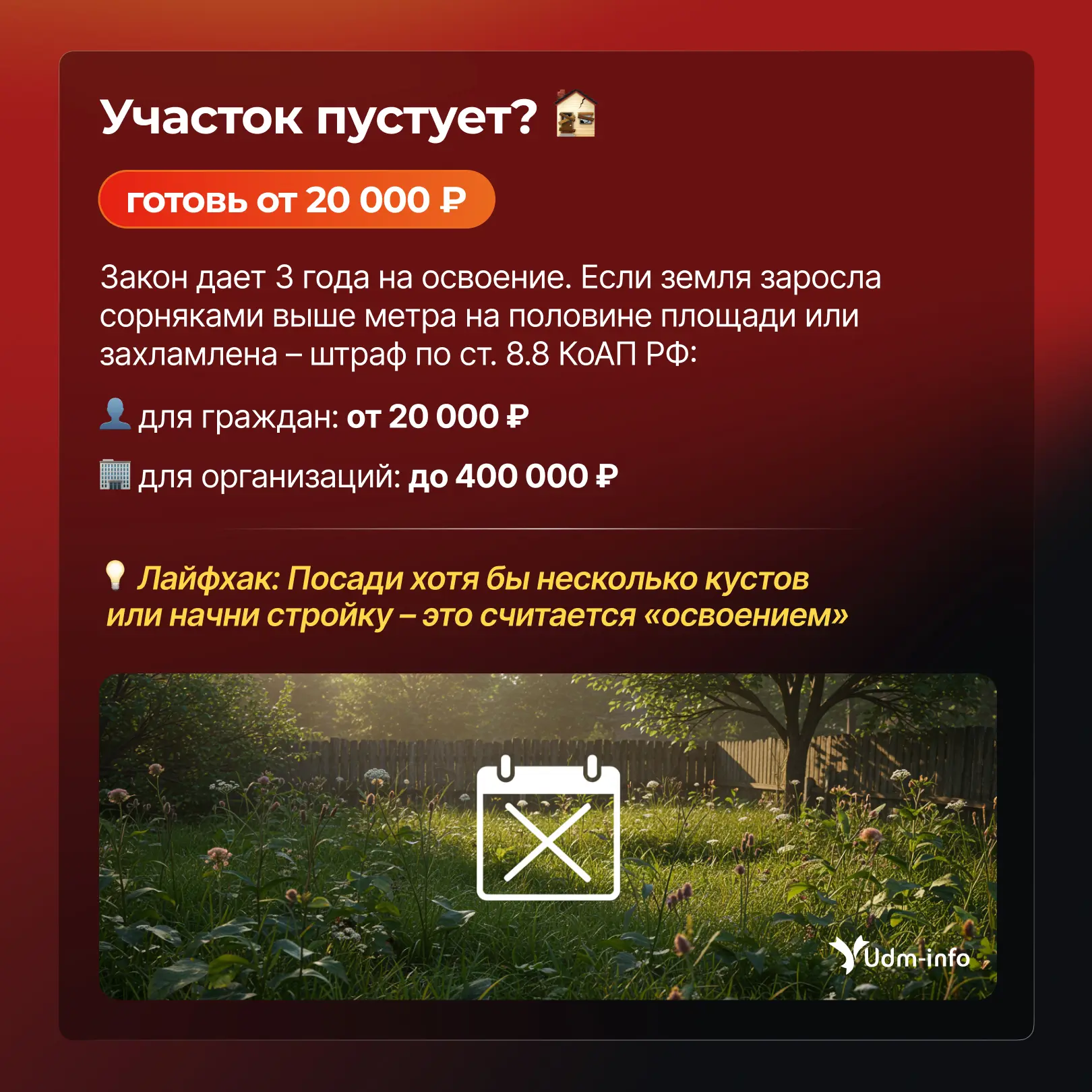 В связи с этим владелицу участков по ч. 1 ст. 20.4 КоАП могут оштрафовать на сумму до 15 тысяч рублей.