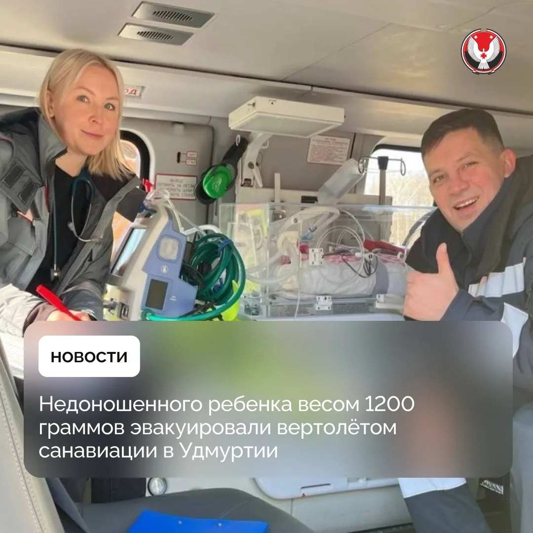 Впервые в Удмуртии вертолёт санавиации использовали для перевозки глубоко недоношенного ребёнка.