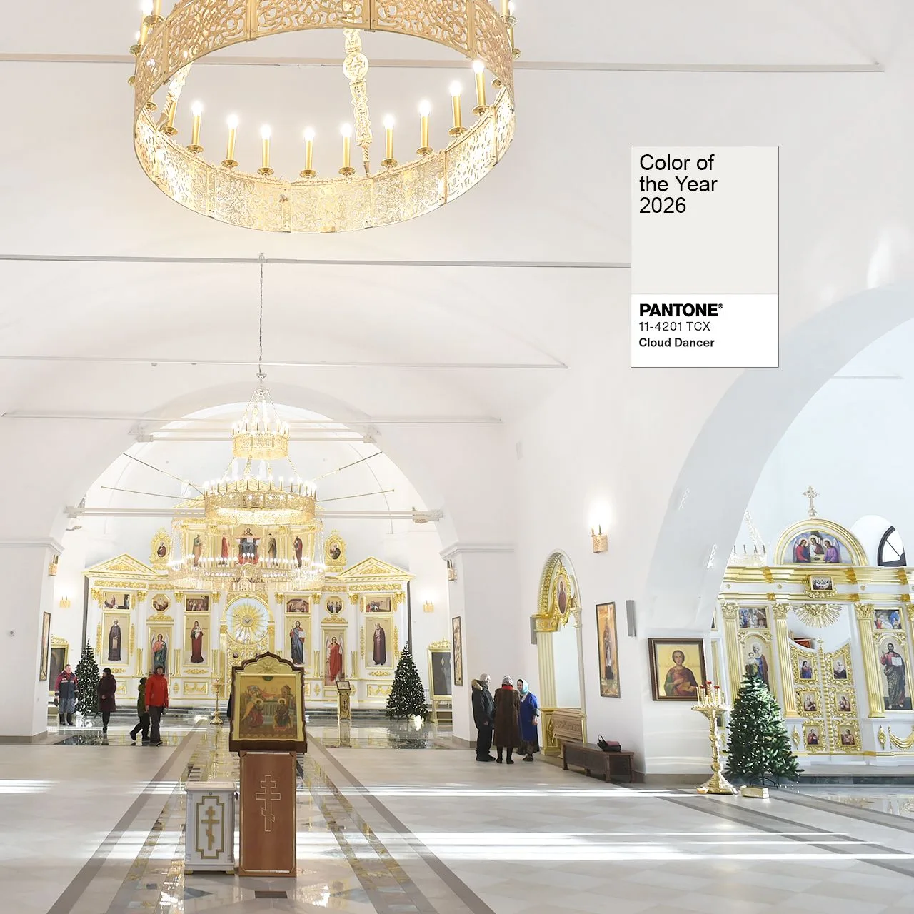 Институт цвета Pantone объявил цвет 2026 года – «облачный танцор». Его позиционируют как нейтральный белый, символизирующий успокоение и ценность тихого созерцания.
