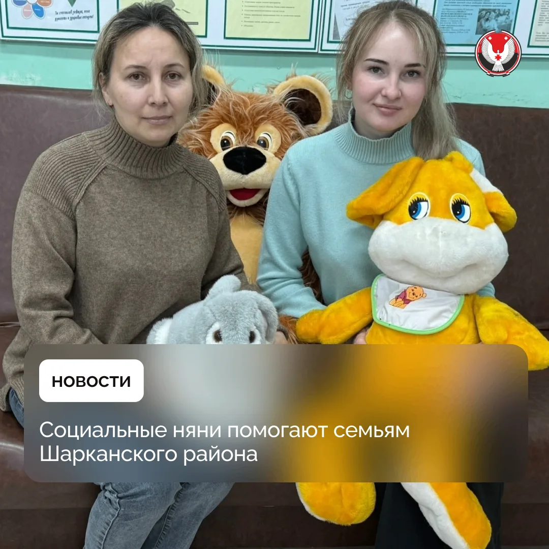 Сотрудницы филиала Республиканского комплексного центра социального обслуживания Шарканского района Алёна Наговицына и Александра Дмитриева заботятся о семьях с детьми до 3 лет. Они помогают им в качестве социальных нянь, когда родителям нужно решить неотложный вопрос, поработать или заняться учёбой.