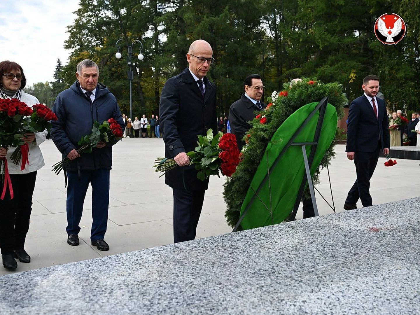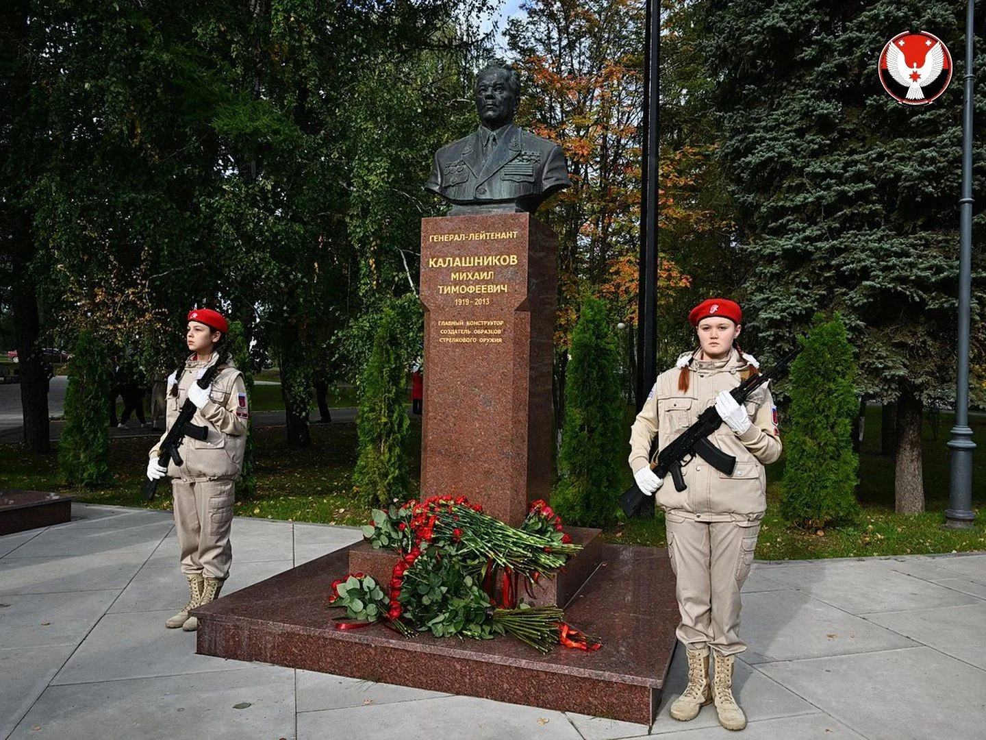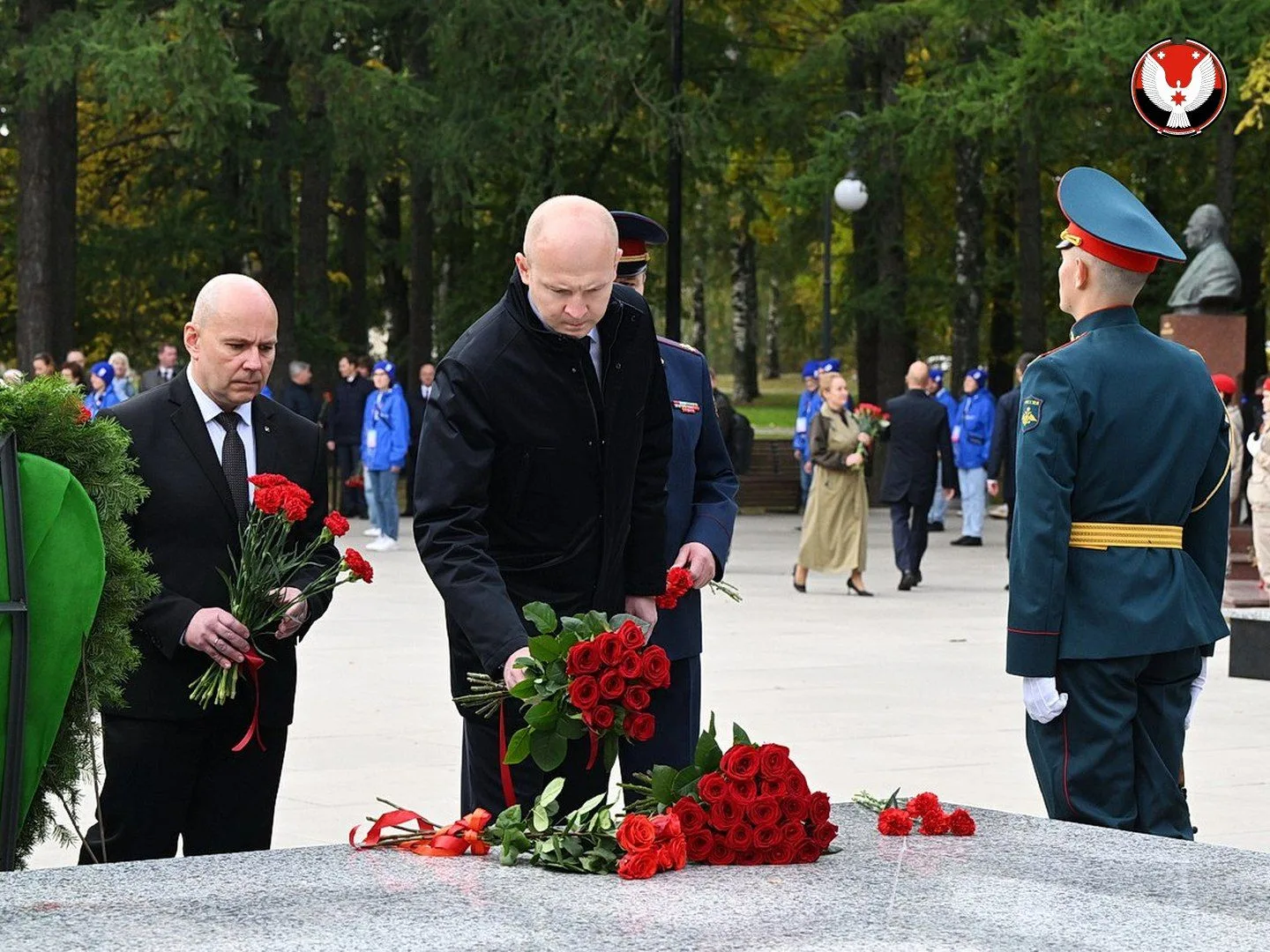 – Глава Удмуртии Александр Бречалов возложил цветы в честь подвига трудящихся республики в годы Великой Отечественной войны к бюстам Михаила Калашникова и Дмитрия Устинова