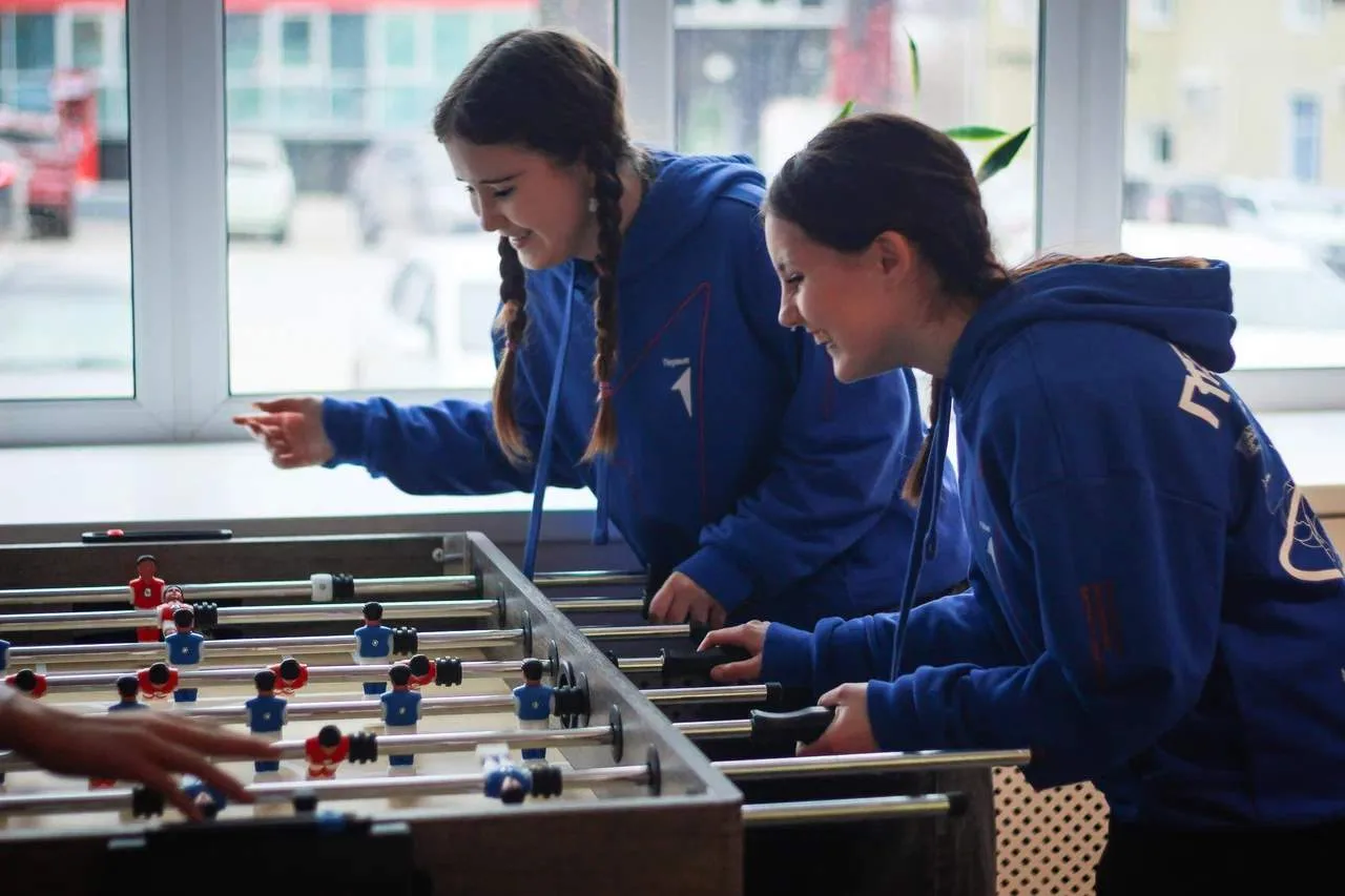 Теперь у ребят есть футбольная и баскетбольная площадки, беговые дорожки и тренажёры, а у зрителей – крытые трибуны на 150 мест.