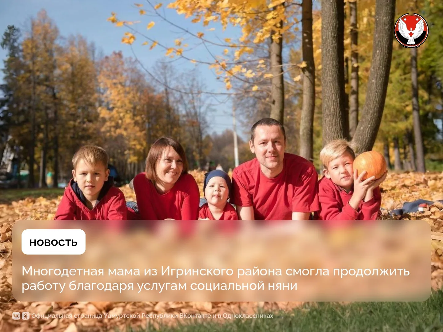 Многодетная мама из Игринского района смогла продолжить работу благодаря услугам социальной няни
