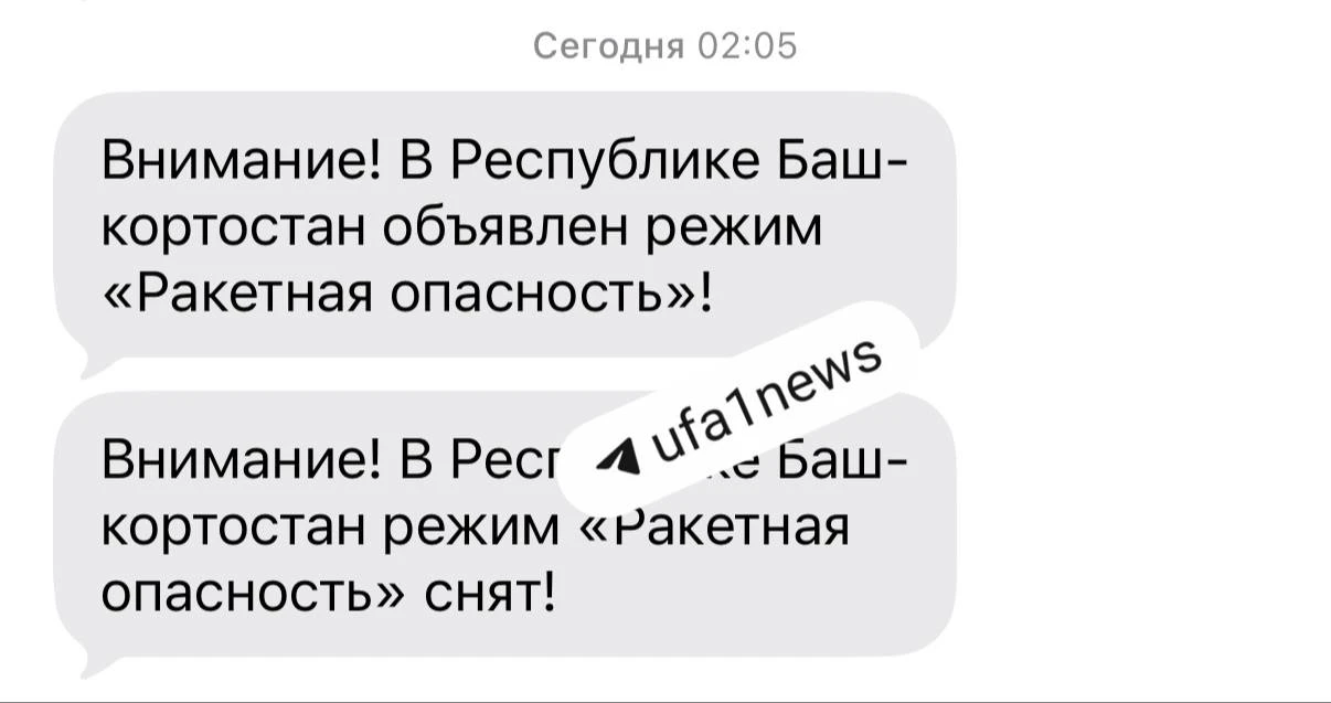 Ракетную опасность объявляли ночью в Башкортостане