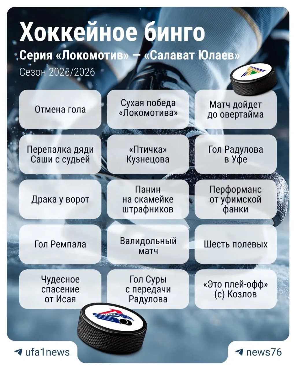 Мы сделали бинго для фанатов. А вы как думаете, что обязательно произойдет на матчах юлаевцев и «Локомотива»? 😇