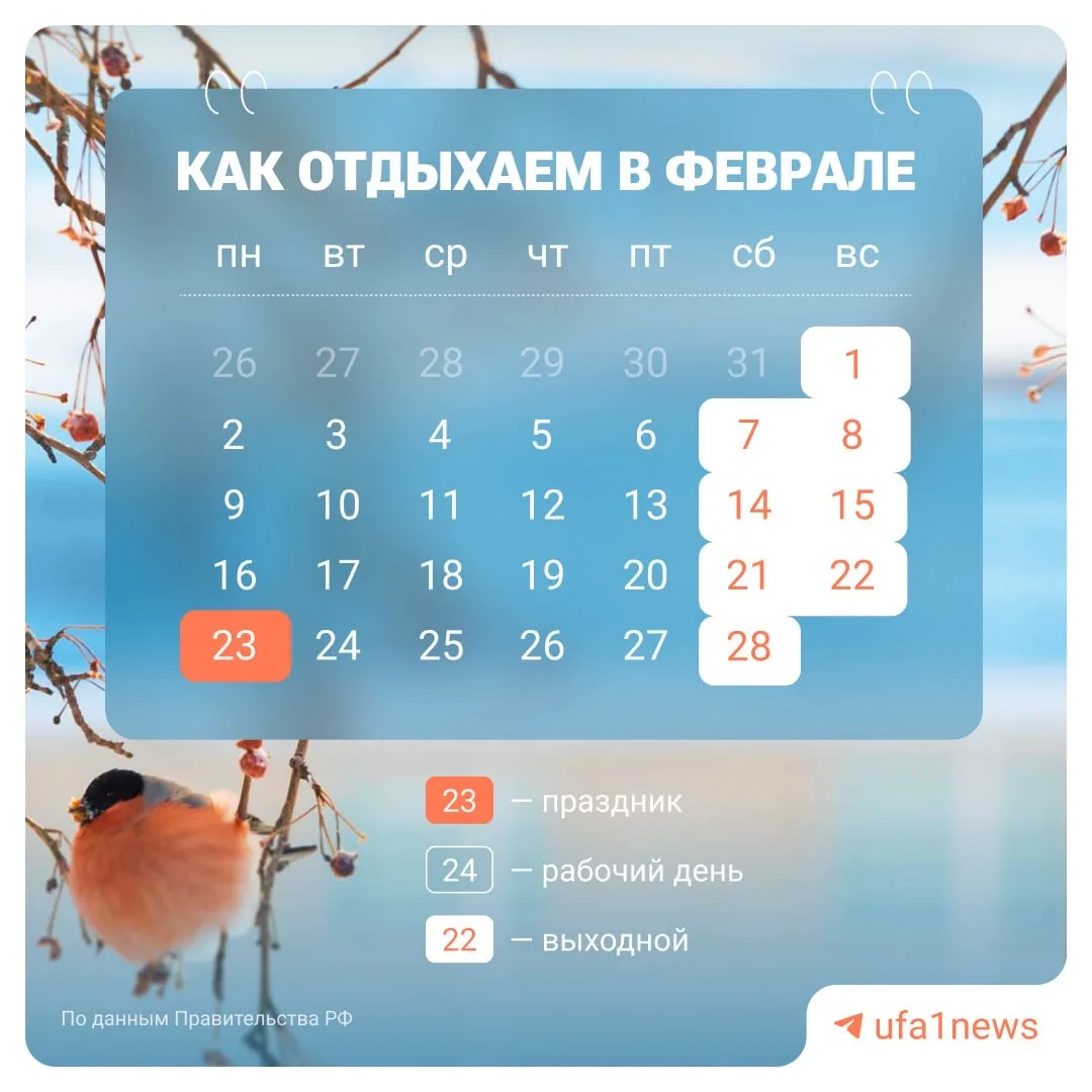 Отдыхаем в понедельник, 23 февраля, потом четыре дня работаем.