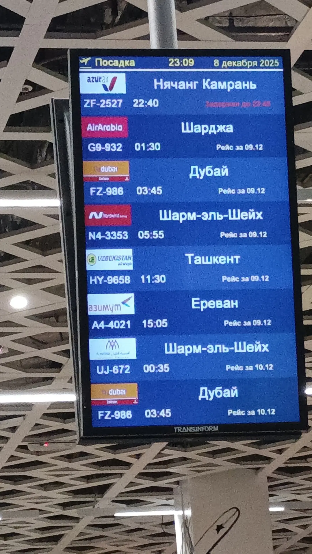 Задерживаются прилеты из Москвы: «Победа» (два), Utair, «Уральские авиалинии», «Аэрофлот» (два). Также задерживаются рейсы из Сургута и Нового Уренгоя. Один рейс «Аэрофлота» отменен.