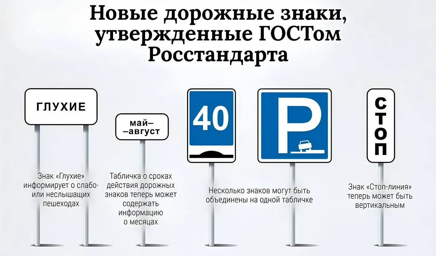 Более 60 новых дорожных знаков появятся в России с 1 января 2026 года