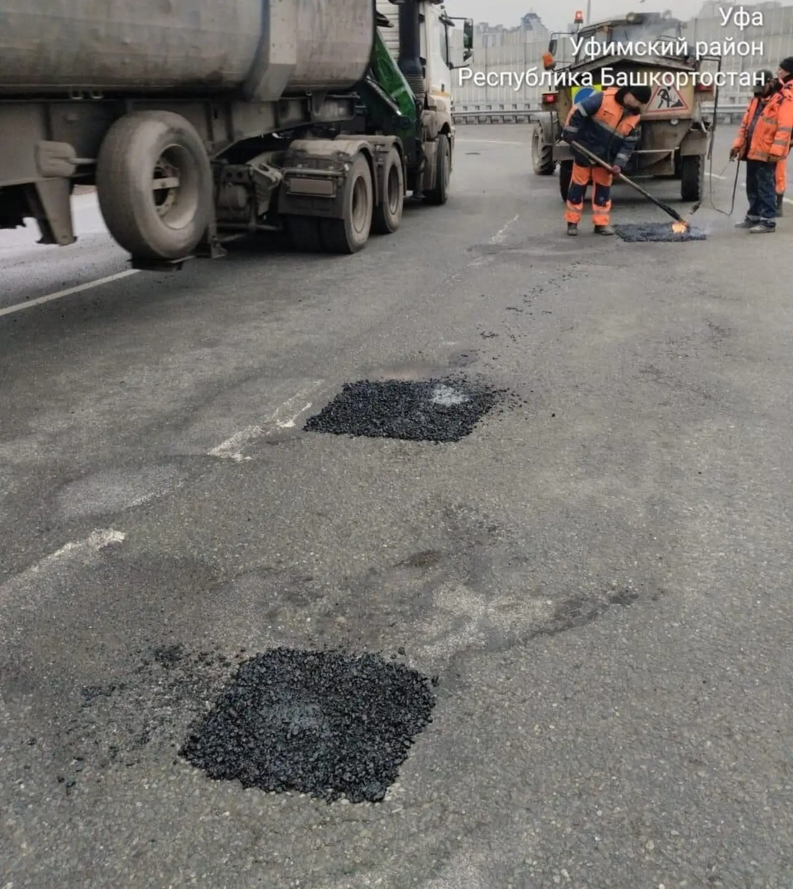 В Уфе на развязке трассы Уфа - Аэропорт отремонтировали покрытие с использованием холодного асфальтобетона