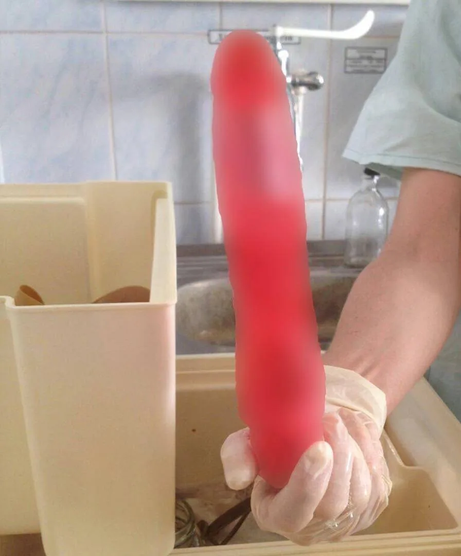 Мужик рассказала врачам невыдуманную историю: он, жена и 30-сантиметровый силиконовый преступник развлекались в кровати, закончили свое дело и женщина ушла в ванную.