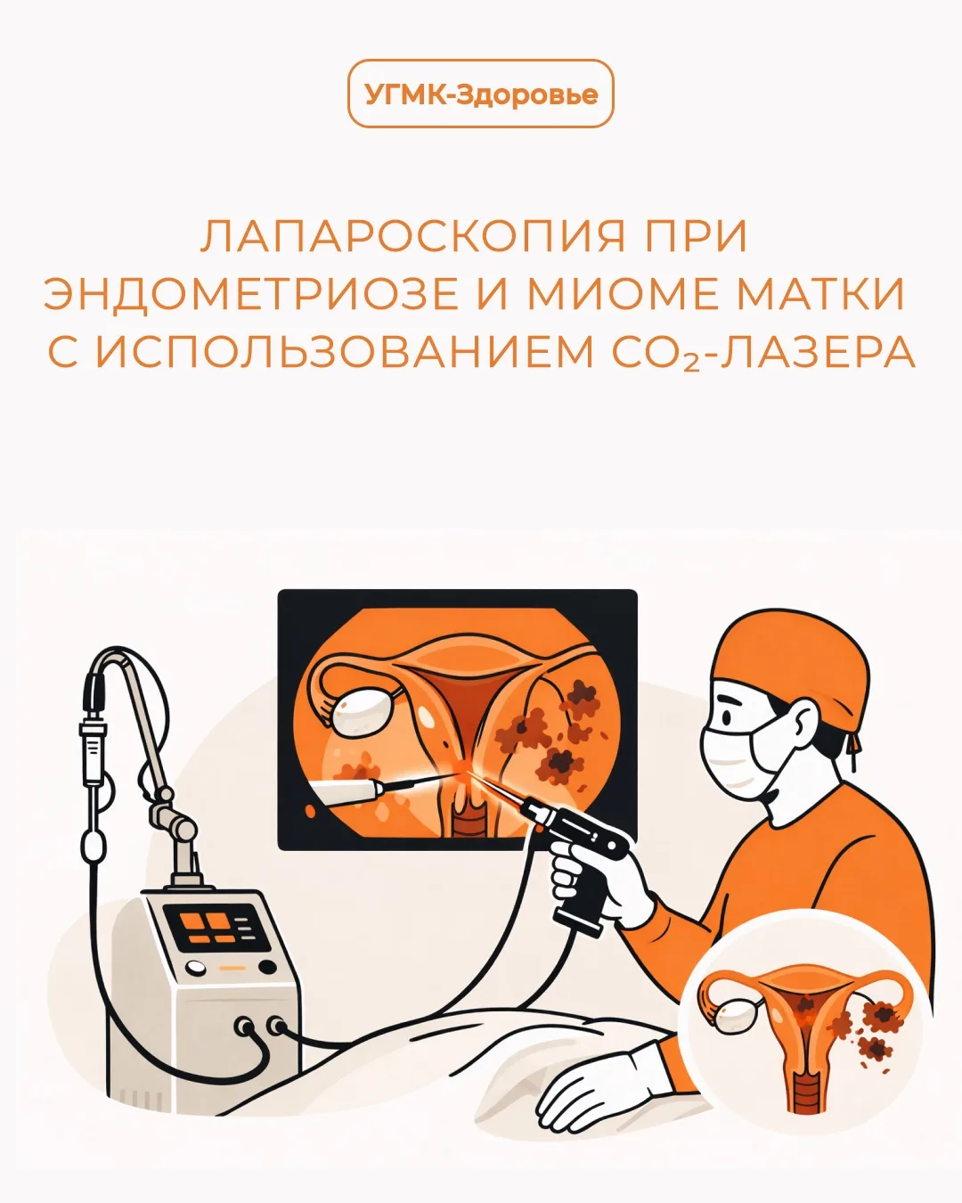 В клинике «УГМК-Здоровье» лапароскопические вмешательства при эндометриозе и миоме матки выполняются с применением CO₂-лазера — современной высокоточной технологии.