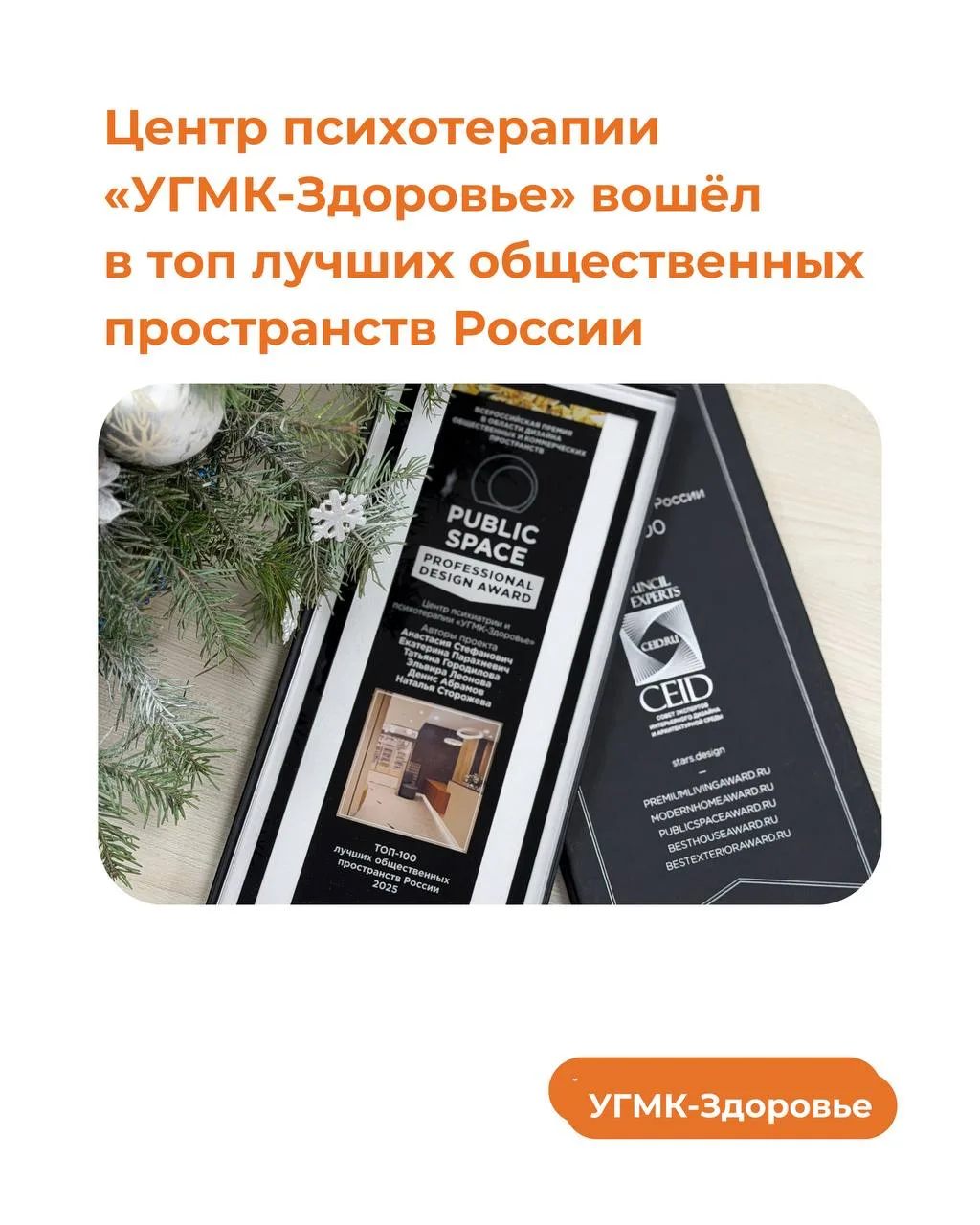 🏆 Центр психотерапии «УГМК-Здоровье» вошёл в топ-100 общественных интерьеров России