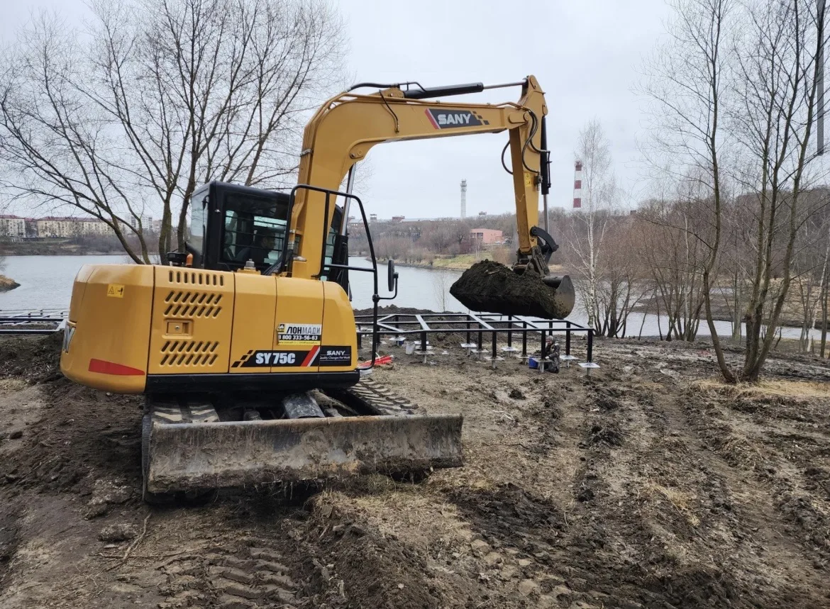На берегу Борисоглебского озера ведутся интенсивные строительные работы.