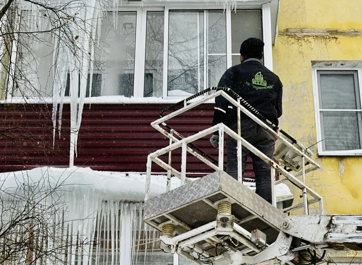 На вызов оперативно отреагировали коммунальные службы. К дому срочно направили автовышку со специалистами, которые приступили к демонтажу. Задача была сложной: нужно было не только убрать опасную массу льда, но и не повредить при этом фасад здания и балконы.