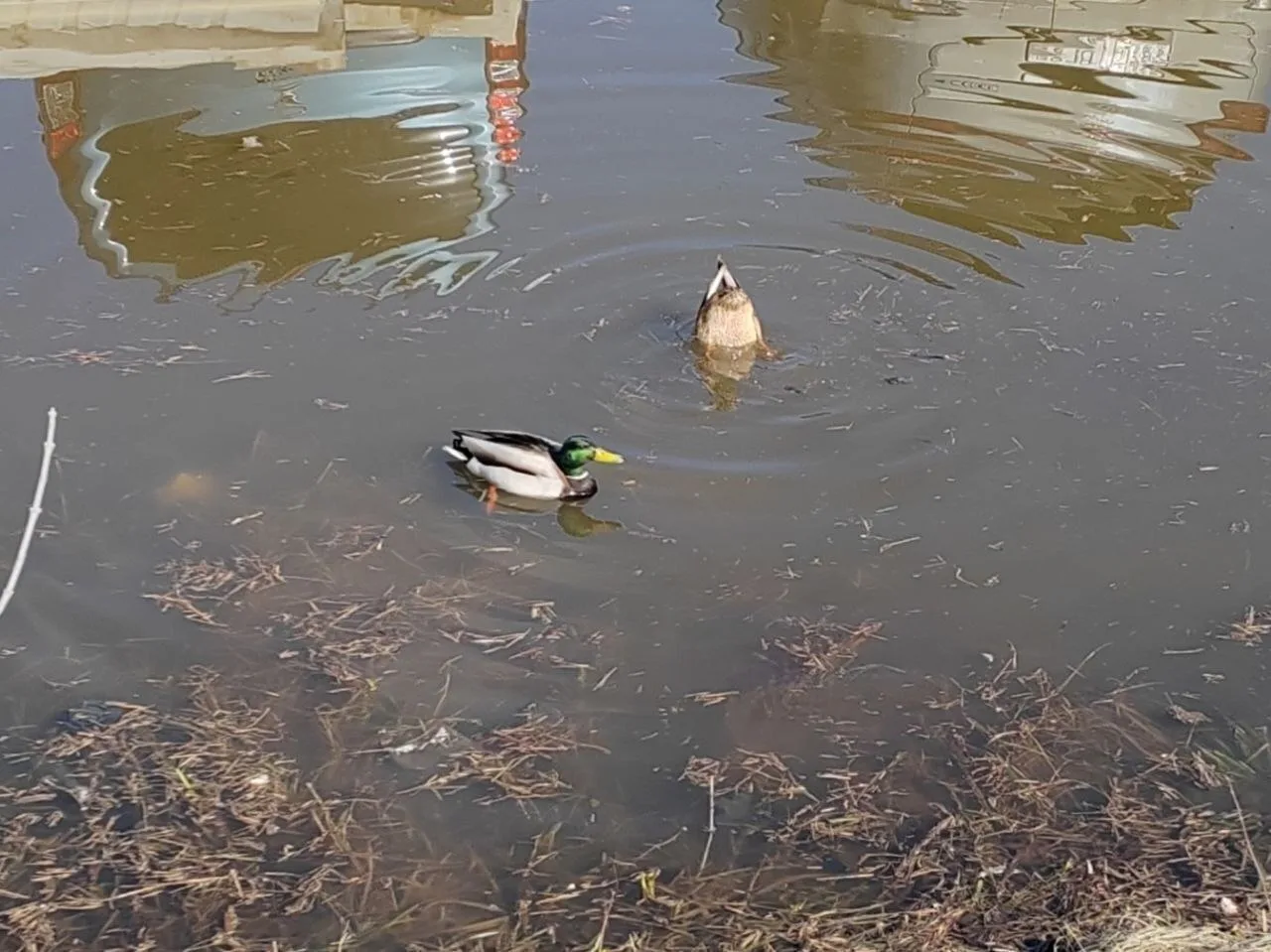 На Щербакова в луже между 12 и 18 домами поселилась утиная парочка ❤️