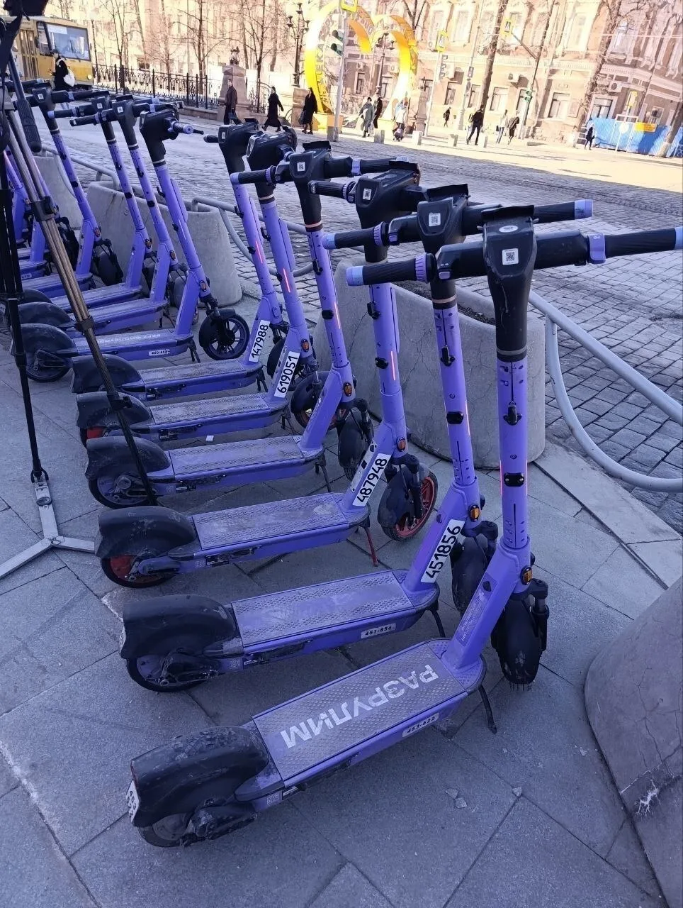 Подростки пытаются ездить на самокатах по двое, трое и даже вчетвером.