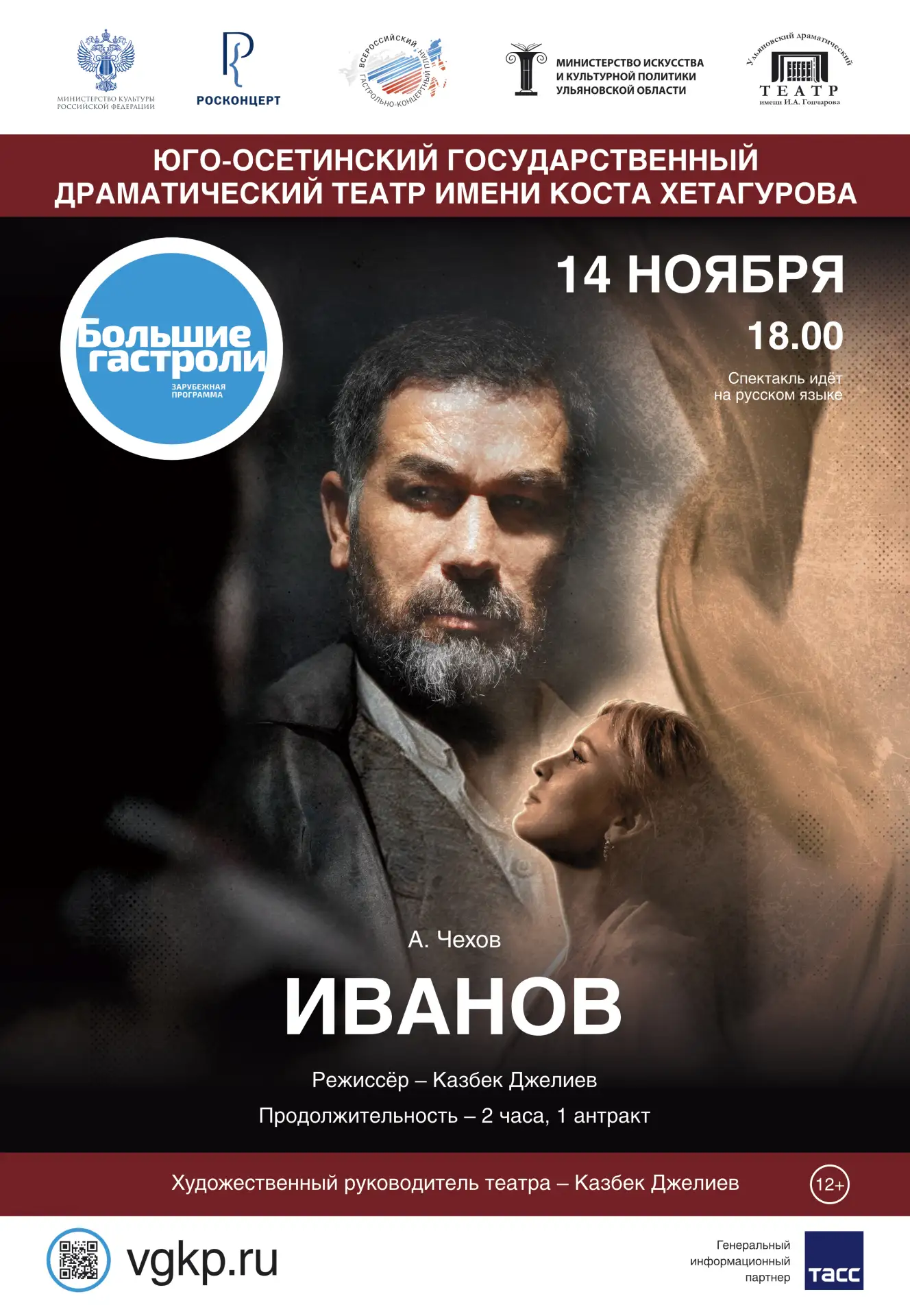🎭 14 ноября в 18:00 на Основной сцене - премьерный спектакль Юго-Осетинского государственного драматического театра имени Коста Хетагурова "Иванов" А.П.Чехова (12+). Режиссер – Казбек Джелиев.