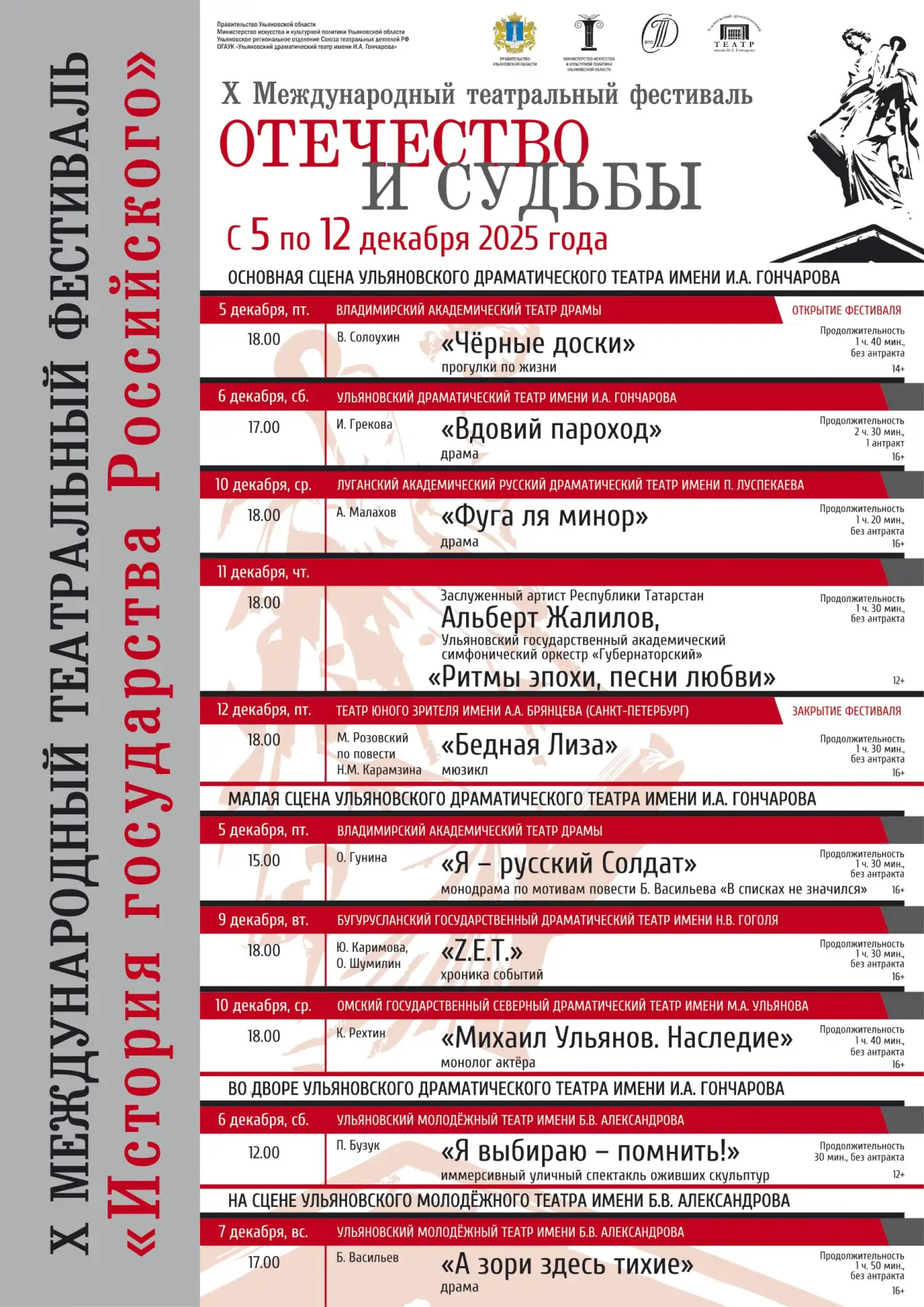 Афиша Х Международного театрального фестиваля "История государства Российского. Отечество и судьбы". Сохраняйте, выбирайте спектакли - и до встречи в театре!