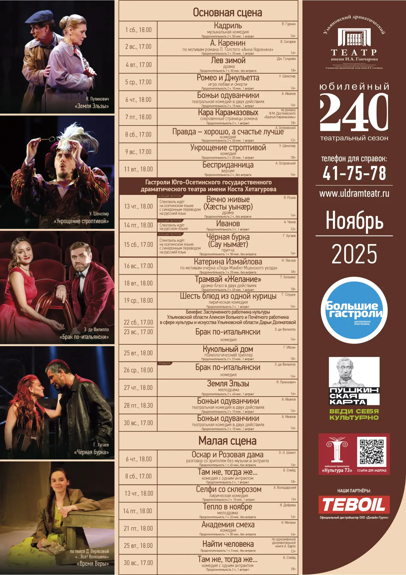 Репертуар Ульяновского драматического театра имени И.А.Гончарова на ноябрь