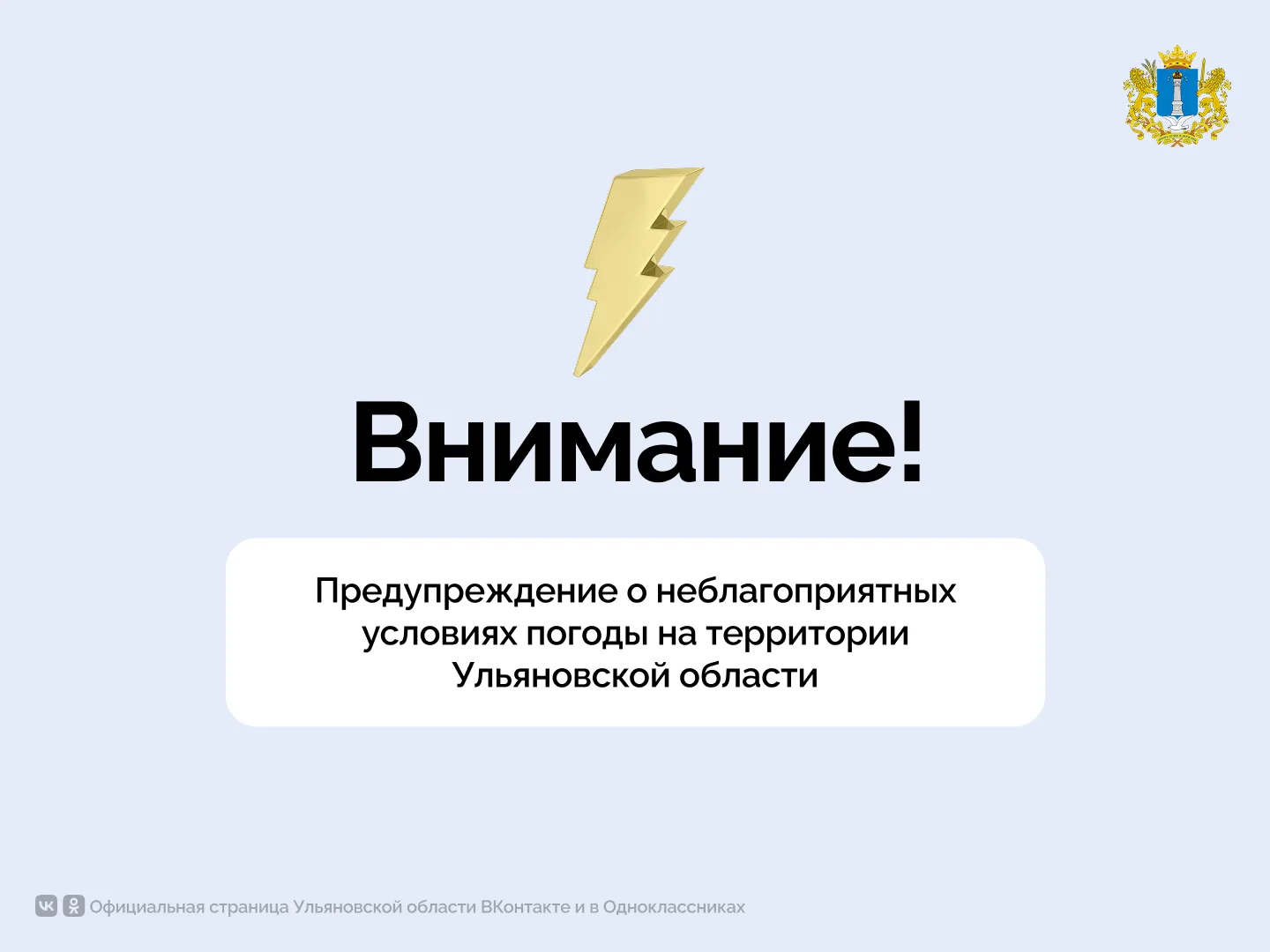 ❗️ Предупреждение о неблагоприятных условиях погоды на территории Ульяновской области.