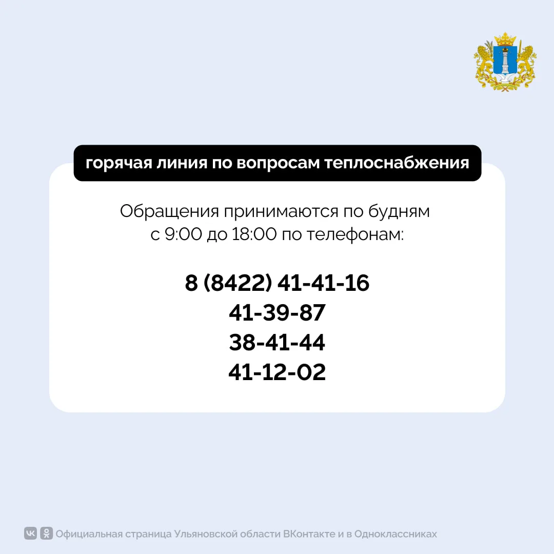 ☎️ В Ульяновской области открыта горячая линия по вопросам теплоснабжения